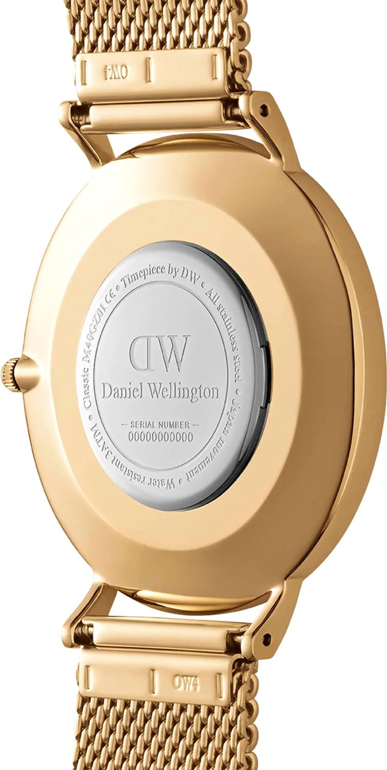 Daniel Wellington — минималистичные мужские часы, сочетающие современную элегантность и скандинавскую строгость. Круглый корпус диаметром 40 мм выполнен из нержавеющей стали с PVD-покрытиемPVDУльтратонкое покрытие наносится в технике вакуумного напыления, сочетает в себе нитрид титана особой прочности со слоем золота или оксида хрома. Несёт в себе декоративную или защитную функцию. с полированной поверхностью, акцентируя чистоту линий.