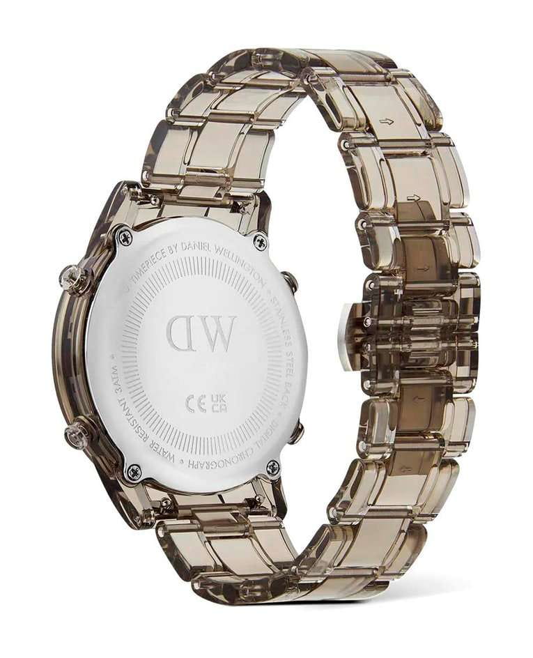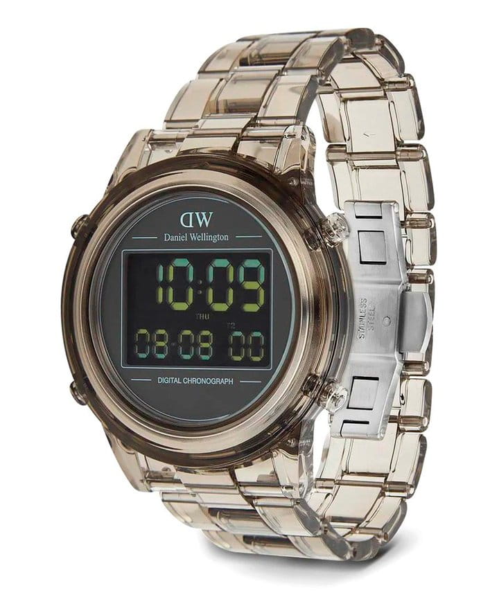 Женские наручные часы Daniel Wellington DW00100760 из коллекции Retro Digital Light Grey сочетают в себе современный дизайн и практичность. Модель обладает круглым корпусом, выполненным из прозрачного биопластика и нержавеющей стали, что делает их легкими и комфортными для повседневного ношения . Цифровой механизм оснащен функциями будильникаБудильникБуди́льник — часы, в заданный момент времени подающие звуковой, световой и/или в редких случаях другой сигнал. и автоматического календаря, отображающего дату и день недели. Для удобства использования циферблат оснащен светодиодной подсветкойСветодиодная подсветкаСветодиодная или LED-подсветка обеспечивает появление яркого холодного свечения за счёт LED-элементов - маленьких лампочек. Они потребляют минимальное количество энергии, чаще всего можно встретить 1 светодиод, в нижней части циферблата., обеспечивающей четкость считывания данных в темное время суток . Ремешок выполнен из прозрачного биопластика на застёжке «бабочка» с кнопкамиЗастёжка "бабочка"Такой вид застёжки дополняется предохранителями, помогающими избежать случайного раскрытия браслета. Обладают изящным исполнением. . Корпус часов изготовлен из прочного органического стекла, защищающего цифровой дисплей от повреждений и царапин . Данная модель является частью популярной линейки бренда Daniel Wellington, основанного в Швеции, и подходит для активного образа жизни благодаря своей функциональности и современному дизайну .