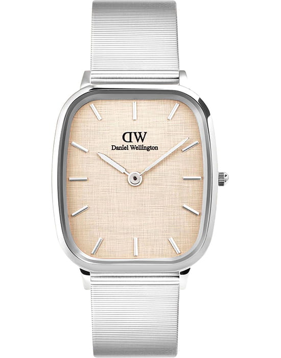 Daniel Wellington Marlon Wire Linen Silver — стильные унисекс-часы с утончённым дизайном, в которых сочетаются строгие линии и изысканная лёгкость. Прямоугольный корпус размером 32×36 мм выполнен из нержавеющей стали, создающим мягкий и благородный блеск.Минеральное стеклоМинеральное стеклоМинеральное стекло представляет собой искусственно выращенный минерал кварца. Такое стекло отличается особой устойчивостью к повреждениям и царапинам. Уступает по некоторым качествам сапфировому стеклу. устойчивое к мелким механическим повреждениям. Циферблат Linen оформлен в светлом тоне с изящной текстурой «лён», подчёркивающей скандинавский минимализм и добавляющей образу утончённости. Строгие метки и тонкие стрелки поддерживают гармонию линий. Модель оснащена надёжным кварцевым механизмом, гарантирующим точность хода. Браслет Wire выполнен в виде тонкой миланской сетки с PVD-покрытиемPVDУльтратонкое покрытие наносится в технике вакуумного напыления, сочетает в себе нитрид титана особой прочности со слоем золота или оксида хрома. Несёт в себе декоративную или защитную функцию. в цвете розового золота на раскладном замкеРаскладной замокДанный вариант застежки используется только на часах с металлическим браслетом. Отличительная особенность такого крепления в том, что длина браслета становится универсальной и вы можете самостоятельно отрегулировать нужный вам размер – застежка просто двигается по браслету часов.. Daniel Wellington — универсальный аксессуар для ценителей лаконичного стиля, идеально подходящий как к повседневным, так и к более торжественным образам.