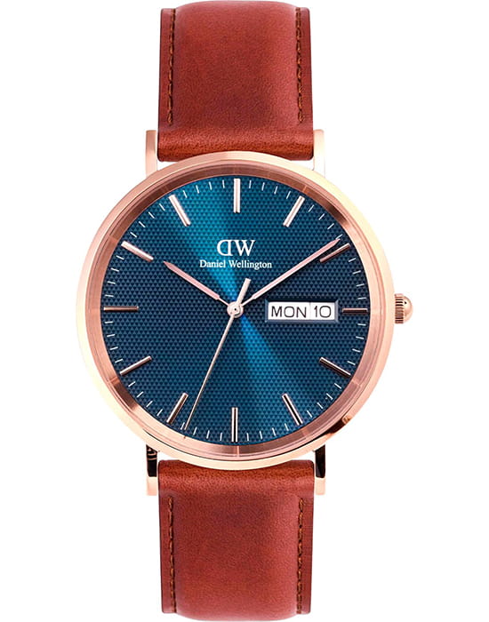 Daniel Wellington — минималистичные мужские часы, сочетающие современную элегантность и скандинавскую строгость. Круглый корпус диаметром 40 мм выполнен из нержавеющей стали с PVD-покрытиемPVDУльтратонкое покрытие наносится в технике вакуумного напыления, сочетает в себе нитрид титана особой прочности со слоем золота или оксида хрома. Несёт в себе декоративную или защитную функцию. с полированной поверхностью, акцентируя чистоту линий.