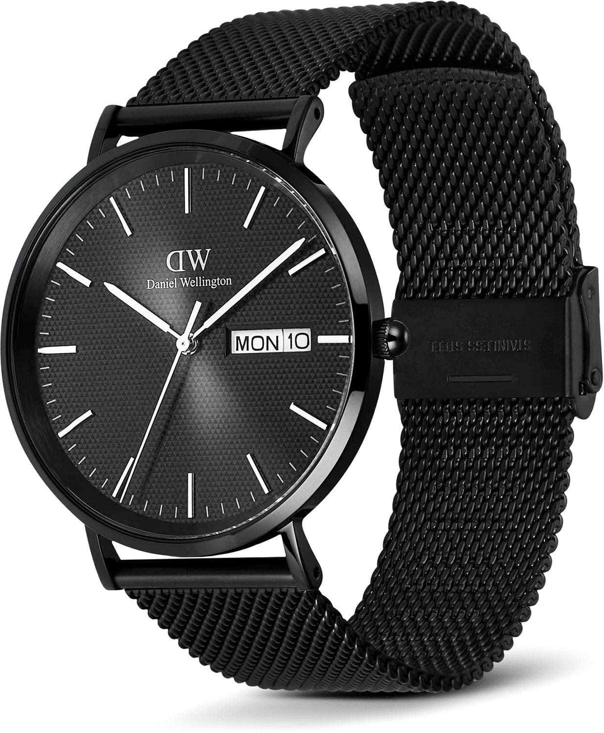 Daniel Wellington — минималистичные мужские часы, сочетающие современную элегантность и скандинавскую строгость. Круглый корпус диаметром 40 мм выполнен из нержавеющей стали с PVD-покрытиемPVDУльтратонкое покрытие наносится в технике вакуумного напыления, сочетает в себе нитрид титана особой прочности со слоем золота или оксида хрома. Несёт в себе декоративную или защитную функцию. с полированной поверхностью, акцентируя чистоту линий.