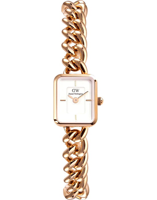 Daniel Wellington Jolie Chain DW00100835 — изящные женские часы в фирменном стиле бренда с акцентом на минимализм и украшение в виде массивного браслета-цепочки. Прямоугольный корпус аккуратного размера подчёркивает современный силуэт, а браслет с широкими звеньями создаёт эффект ювелирного аксессуара.Минеральное стеклоМинеральное стеклоМинеральное стекло представляет собой искусственно выращенный минерал кварца. Такое стекло отличается особой устойчивостью к повреждениям и царапинам. Уступает по некоторым качествам сапфировому стеклу. устойчивое к мелким механическим повреждениям. Циферблат оформлен лаконично: тонкие метки и стрелки обеспечивают лёгкость восприятия времени, оставляя пространство для чистой эстетики. Корпус и браслет покрыты PVD-покрытиемPVDУльтратонкое покрытие наносится в технике вакуумного напыления, сочетает в себе нитрид титана особой прочности со слоем золота или оксида хрома. Несёт в себе декоративную или защитную функцию., что гарантирует стойкость к царапинам и сохранение блеска. Модель работает на точном кварцевом механизме, не требующем ежедневного завода, а надёжная застёжка обеспечивает комфортное ношение. Daniel Wellington Jolie Chain — это часы и стильное украшение одновременно, идеально подходящее для акцента в повседневном и вечернем образе.