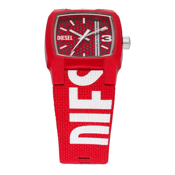 Мужские наручные часы с минеральным стекломМинеральное стеклоМинеральное стекло представляет собой искусственно выращенный минерал кварца. Такое стекло отличается особой устойчивостью к повреждениям и царапинам. Уступает по некоторым качествам сапфировому стеклу. Diesel Cliffhanger DZ2168, кварцевый механизм с высокой точностью. Класс водозащиты: 30 метров, позволит защитить корпус от случайных брызг или капель дождя. Квадратный корпус часов изготовлен из нейлона. Циферблат содержит накладные метки. Силиконовый ремешок на стандартной застёжке.
