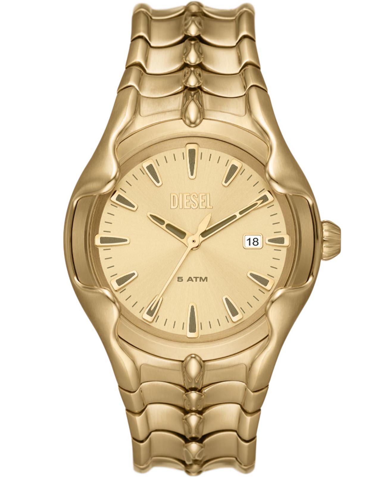 Мужские итальянские наручные часы Diesel Vert DZ2186 с надёжным кварцевым механизмом. Корпус и браслет часов изготовлены из нержавеющей стали с IP-покрытиемIP-покрытиеМетод ионного напыления. Демонстрирует повышенную устойчивость к истиранию, окислению и химическим веществам. Под воздействием высокого давления и температуры около 1500°C молекулы металла надёжно соединяются с частицами корпуса часов.. Стальной браслет на раскладной застёжкеРаскладная застёжкаТакой тип застёжки используется только на браслетах из металла. Она никогда не раскрывается полностью, происходит разделение на 2 и более частей. Раскладывающая застёжка снизит вероятность потери часов к минимуму.. Минеральное стеклоМинеральное стеклоМинеральное стекло представляет собой искусственно выращенный минерал кварца. Такое стекло отличается особой устойчивостью к повреждениям и царапинам. Уступает по некоторым качествам сапфировому стеклу. устойчивое к мелким механическим повреждениям. Стрелки и метки с люминесцентным покрытиемЛюминесцентное покрытиеПозволяет считывать показания времени в темноте. Производители наносят на стрелки, часовые индексы, безель или поверхность циферблата светонакопительный состав, дающий холодное свечение.. Окошко даты находится в положении 3 часа. Класс водозащиты: 50 метров, позволит защитить корпус от случайных брызг или капель дождя.