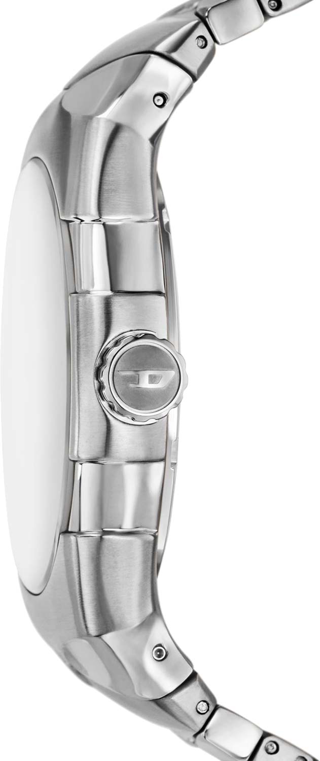 Мужские кварцевые часы Diesel DZ2212 — это стильный аксессуар, который подчеркнёт индивидуальность и безупречный вкус своего владельца. Модель выполнена в круглой форме из нержавеющей стали с сочетанием матовых и полированных деталей, что придаёт ей элегантный внешний вид и устойчивость к царапинам. Циферблат белого цвета оформлен по технологии Sunray, создающей эффект солнечных лучей, а дополнен штриховыми метками для удобства считывания времени. Защиту циферблата обеспечивает минеральное стеклоМинеральное стеклоМинеральное стекло представляет собой искусственно выращенный минерал кварца. Такое стекло отличается особой устойчивостью к повреждениям и царапинам. Уступает по некоторым качествам сапфировому стеклу., устойчивое к повседневным нагрузкам. Заводная головка имеет рифлёную форму, что делает её удобной в использовании и добавляет модели спортивного акцента. Браслет из стали оснащён раскладной застёжкойРаскладная застёжкаТакой тип застёжки используется только на браслетах из металла. Она никогда не раскрывается полностью, происходит разделение на 2 и более частей. Раскладывающая застёжка снизит вероятность потери часов к минимуму. с двумя кнопками, обеспечивающей комфорт и надёжную фиксацию на запястье. Часы водонепроницаемы до 50 метров (, что позволяет использовать их в повседневных условиях — при мытье рук или под лёгким дождём. Эти часы станут универсальным аксессуаром для тех, кто ценит сочетание стиля, качества и функциональности — идеальный выбор для уверенных в себе мужчин, следящих за своим имиджем и предпочитающих выделяться.