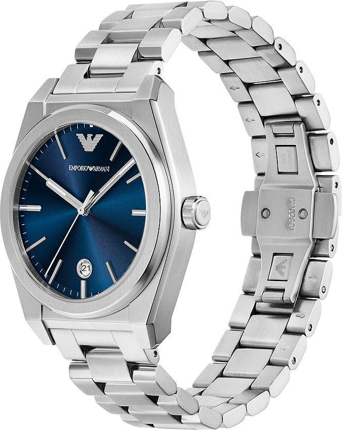 Мужские часы Emporio Armani Federico AR11620 - стильные с кварцевым механизмом сочетают в себе элегантность и функциональность, что делает их идеальным аксессуаром для современного мужчины. Корпус часов из нержавеющей стали, что обеспечивает долговечность и устойчивость к внешним воздействиям. Минеральное стеклоМинеральное стеклоМинеральное стекло представляет собой искусственно выращенный минерал кварца. Такое стекло отличается особой устойчивостью к повреждениям и царапинам. Уступает по некоторым качествам сапфировому стеклу. защищает циферблат, добавляя изысканности всей конструкции. Размер корпуса составляет 41 мм, а толщина — 10 мм, что придаёт часам солидный внешний вид, не утяжеляя при этом запястье. Часы имеют водонепроницаемость WR50 (5 атм), это позволяет использовать их в повседневной жизни, не опасаясь воздействия воды. Стальной браслет на застежке «бабочка»Застёжка "бабочка"Такой вид застёжки дополняется предохранителями, помогающими избежать случайного раскрытия браслета. Обладают изящным исполнением. обеспечивает комфортное и надёжное крепление на запястье. Функция отображения даты, расположенная на отметке «6 часов», добавляет практичности и удобства в использовании. Стрелки с люминесцентным покрытиемЛюминесцентное покрытиеПозволяет считывать показания времени в темноте. Производители наносят на стрелки, часовые индексы, безель или поверхность циферблата светонакопительный состав, дающий холодное свечение. обеспечивают удобное считывание времени в темноте после кратковременного пребывания на свету, что делает эти часы практичными в любых условиях.
