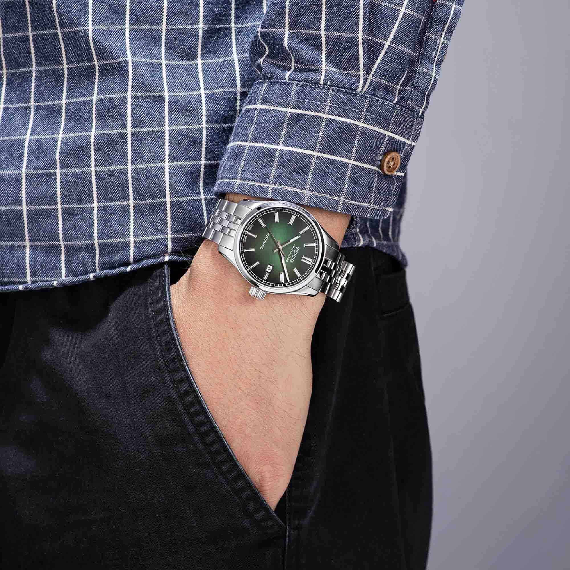 Мужские швейцарские механические часы Epos Passion 3501.132.20.13.30, механический механизм (автоматический калибр) с высокой точностью. Сапфировое стеклоСапфировое стеклоПрочный и надёжный материал из кристалла сапфира синтетического происхождения, характеризующийся особой твёрдостью и устойчивостью к царапинам и повреждениям. устойчивое к появлению царапин, обладающее высокой прозрачностью. Класс водозащиты: 100 метров, позволит плавать, нырять и заниматься другими водными видами спорта. Корпус и браслет часов изготовлены из стали. Прозрачная задняя крышка. Браслет с раскладной застёжкойРаскладная застёжкаТакой тип застёжки используется только на браслетах из металла. Она никогда не раскрывается полностью, происходит разделение на 2 и более частей. Раскладывающая застёжка снизит вероятность потери часов к минимуму.. Стрелки и метки с люминесцентным покрытиемЛюминесцентное покрытиеПозволяет считывать показания времени в темноте. Производители наносят на стрелки, часовые индексы, безель или поверхность циферблата светонакопительный состав, дающий холодное свечение.. Окошко даты находятся в положении 3 часа. Декорированный механизм.