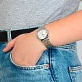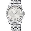 Festina Mademoiselle F16940/A - яркий стиль и функциональность этих часов придутся по душе активной девушке. Кварцевый механизм с высокой точностью. Минеральное стеклоМинеральное стеклоМинеральное стекло представляет собой искусственно выращенный минерал кварца. Такое стекло отличается особой устойчивостью к повреждениям и царапинам. Уступает по некоторым качествам сапфировому стеклу. устойчивое к появлению царапин, обладающее высокой прозрачностью. Изящный корпус диаметром 32 мм из нержавеющей стали 316L серебристого цвета идеально сочетается с серебристым циферблатом, придающими часам неповторимый блеск. Стальной браслет на раскладной застёжкеРаскладная застёжкаТакой тип застёжки используется только на браслетах из металла. Она никогда не раскрывается полностью, происходит разделение на 2 и более частей. Раскладывающая застёжка снизит вероятность потери часов к минимуму. обеспечивает комфортное ношение. Метки в виде точек (цирконы) и римских цифр. Рифленая заводная головка. Класс водозащиты: 50 метров, позволит защитить корпус от случайных брызг или капель дождя. Это идеальный аксессуар для современной женщины, ценящей элегантность и функциональность.