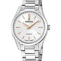 Яркий стиль и функциональность этих часов придутся по душе активной девушке. Кварцевый механизм с высокой точностью. Минеральное стеклоМинеральное стеклоМинеральное стекло представляет собой искусственно выращенный минерал кварца. Такое стекло отличается особой устойчивостью к повреждениям и царапинам. Уступает по некоторым качествам сапфировому стеклу. устойчивое к появлению царапин, обладающее высокой прозрачностью. Циферблат украшен цирконами. Класс водозащиты: 50 метров, позволит защитить часы от капель дождя. Корпус часов изготовлен из нержавеющей стали 316L. Браслет с раскладной застёжкойРаскладная застёжкаТакой тип застёжки используется только на браслетах из металла. Она никогда не раскрывается полностью, происходит разделение на 2 и более частей. Раскладывающая застёжка снизит вероятность потери часов к минимуму..