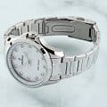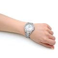 Яркий стиль и функциональность этих часов придутся по душе активной девушке. Циферблат с люминесцентным покрытиемЛюминесцентное покрытиеПозволяет считывать показания времени в темноте. Производители наносят на стрелки, часовые индексы, безель или поверхность циферблата светонакопительный состав, дающий холодное свечение. стрелок. Кварцевый механизм с высокой точностью. Минеральное стеклоМинеральное стеклоМинеральное стекло представляет собой искусственно выращенный минерал кварца. Такое стекло отличается особой устойчивостью к повреждениям и царапинам. Уступает по некоторым качествам сапфировому стеклу. устойчивое к появлению царапин, обладающее высокой прозрачностью. Класс водозащиты: 50 метров, позволит защитить корпус от случайных брызг или капель дождя. Циферблат украшен цирконами. Корпус часов изготовлен из нержавеющей стали 316L. Браслет с раскладной застёжкойРаскладная застёжкаТакой тип застёжки используется только на браслетах из металла. Она никогда не раскрывается полностью, происходит разделение на 2 и более частей. Раскладывающая застёжка снизит вероятность потери часов к минимуму..