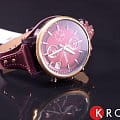 Роскошные американские женские наручные часы. Корпус часов выполнен из высокопрочной стали с полным IP покрытием цвета розового золота. Бордовый циферблат с позолоченными стрелками и индексами. Минеральное стекло, устойчивое к появлению царапин. Водонепроницаемость до 50 метров. Часы удерживаются на руке ремешком из натуральной кожи бордового цвета. Часы оснащены функцией хронографа.
