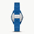 Женские американские часы с паве из кристаллов Fossil Stella ES5193, кварцевый механизм с высокой точностью. Класс водозащиты: 50 метров, позволит защитить корпус от случайных брызг или капель дождя. Круглый корпус часов изготовлен из пластика синего цвета. БезельБезельВнешний ободок, закрепляющий стекло. В спортивных часах так называется поворотное кольцо с делениями на циферблате, выполняет роль таймера – замеряет отрезки времени на шкале. Неподвижный безель – элемент декора. Однонаправленно вращающийся безель на дайверских часах позволяет фиксировать моменты погружения и выныривания на поверхность. украшен паве из кристаллов. Метки в виде штрихов, 12-ти часовая метка в виде римской цифры. 24 индикация, дата и день недели вынесены на малые циферблаты. Рифленая заводная головка. Браслет пластиковый синего цвета.