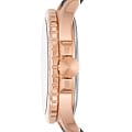 Женские американские часы  с минеральным стекломМинеральное стеклоМинеральное стекло представляет собой искусственно выращенный минерал кварца. Такое стекло отличается особой устойчивостью к повреждениям и царапинам. Уступает по некоторым качествам сапфировому стеклу. Fossil Fossil FB-01 ES5293, кварцевый механизм с высокой точностью. Корпус часов изготовлен из нержавеющей стали. Метки в виде штрихов и точек с кристаллами. Окошко даты находится в положении 3 часа. Стрелки с люминесцентным покрытиемЛюминесцентное покрытиеПозволяет считывать показания времени в темноте. Производители наносят на стрелки, часовые индексы, безель или поверхность циферблата светонакопительный состав, дающий холодное свечение.. Рифленая заводная головка с защитой. Класс водозащиты: 100 метров, позволит плавать, нырять и заниматься другими водными видами спорта. Силиконовый ремешок на стандартной застежке.