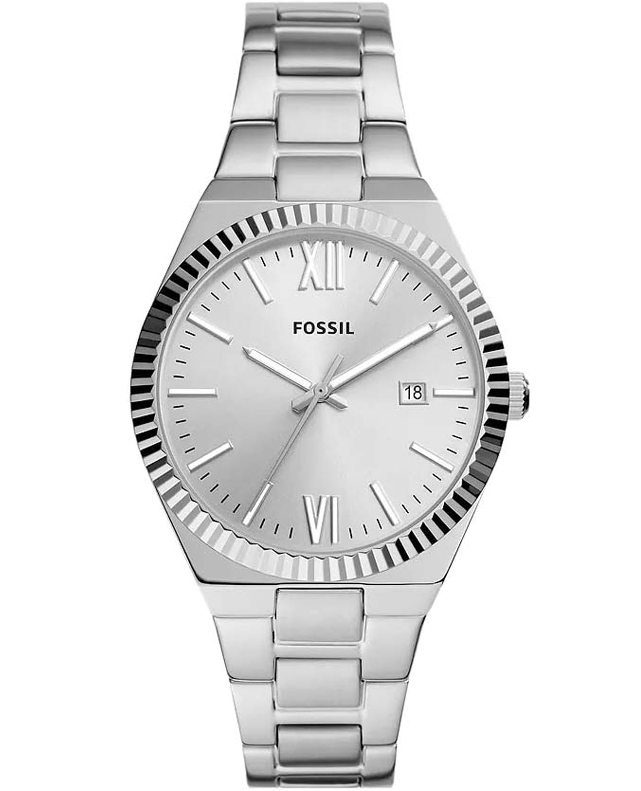 Женские американские кварцевые часы с минеральным стекломМинеральное стеклоМинеральное стекло представляет собой искусственно выращенный минерал кварца. Такое стекло отличается особой устойчивостью к повреждениям и царапинам. Уступает по некоторым качествам сапфировому стеклу. Fossil Scarlette ES5300, кварцевый механизм с высокой точностью. Класс водозащиты: 50 метров, позволит защитить корпус от случайных брызг или капель дождя. Корпус и браслет часов изготовлены из нержавеющей стали с IP-покрытиемIP-покрытиеМетод ионного напыления. Демонстрирует повышенную устойчивость к истиранию, окислению и химическим веществам. Под воздействием высокого давления и температуры около 1500°C молекулы металла надёжно соединяются с частицами корпуса часов.. Стальной браслет с раскладной застёжкойРаскладная застёжкаТакой тип застёжки используется только на браслетах из металла. Она никогда не раскрывается полностью, происходит разделение на 2 и более частей. Раскладывающая застёжка снизит вероятность потери часов к минимуму.. Окошко даты находятся в положении 3 часа. Стрелки и метки с люминесцентным покрытиемЛюминесцентное покрытиеПозволяет считывать показания времени в темноте. Производители наносят на стрелки, часовые индексы, безель или поверхность циферблата светонакопительный состав, дающий холодное свечение..