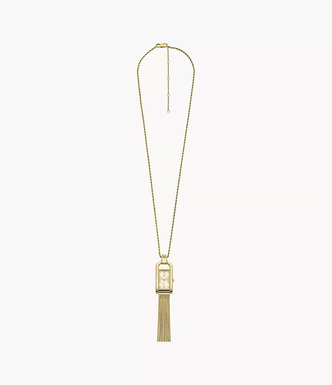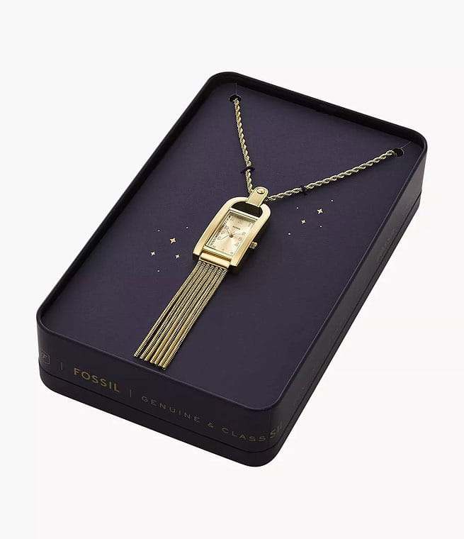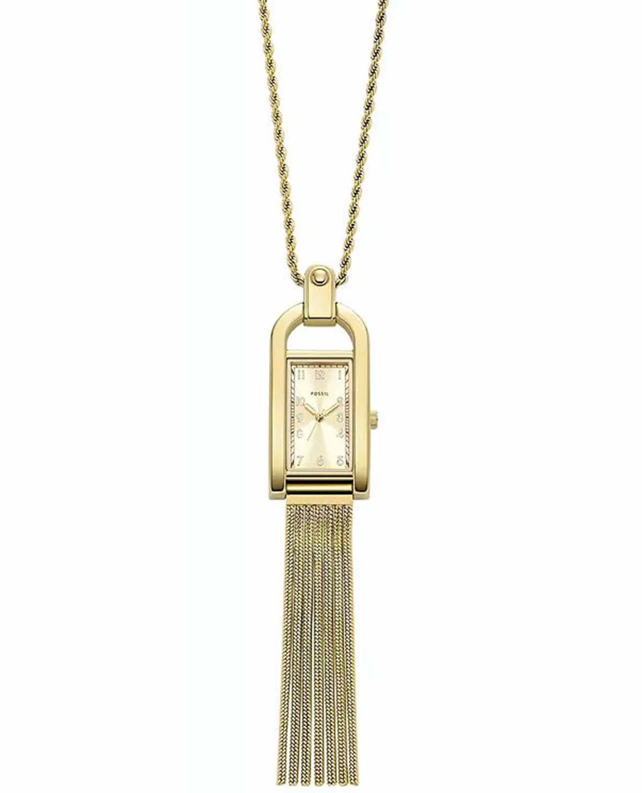 Женские часы-ожерелье Fossil Harwell ES5373 — это изящный и практичный аксессуар, который станет идеальным дополнением для вечерних образов. Эта модель сочетает в себе уникальный дизайн и высокое качество, что делает её привлекательным выбором для различных ситуаций. Fossil Harwell ES5373 оснащены кварцевым механизмом, который гарантирует точность и надёжность хода. Корпус и цепь выполнены из нержавеющей стали с золотистым IP-покрытиемIP-покрытиеМетод ионного напыления. Демонстрирует повышенную устойчивость к истиранию, окислению и химическим веществам. Под воздействием высокого давления и температуры около 1500°C молекулы металла надёжно соединяются с частицами корпуса часов., что обеспечивает долговечность и придаёт часам современный вид. Минеральное стеклоМинеральное стеклоМинеральное стекло представляет собой искусственно выращенный минерал кварца. Такое стекло отличается особой устойчивостью к повреждениям и царапинам. Уступает по некоторым качествам сапфировому стеклу. защищает циферблат от царапин и механических повреждений, увеличивая срок службы аксессуара. Рифленая заводная головка и цепочка добавляют удобства и изысканности в использовании. Водозащита до 5 бар (50 метров) позволяет часам выдерживать брызги воды и капли дождя, сохраняя при этом свою работоспособность. Стрелки с люминесцентным покрытиемЛюминесцентное покрытиеПозволяет считывать показания времени в темноте. Производители наносят на стрелки, часовые индексы, безель или поверхность циферблата светонакопительный состав, дающий холодное свечение. позволяют легко считывать время даже в условиях низкой освещенности.