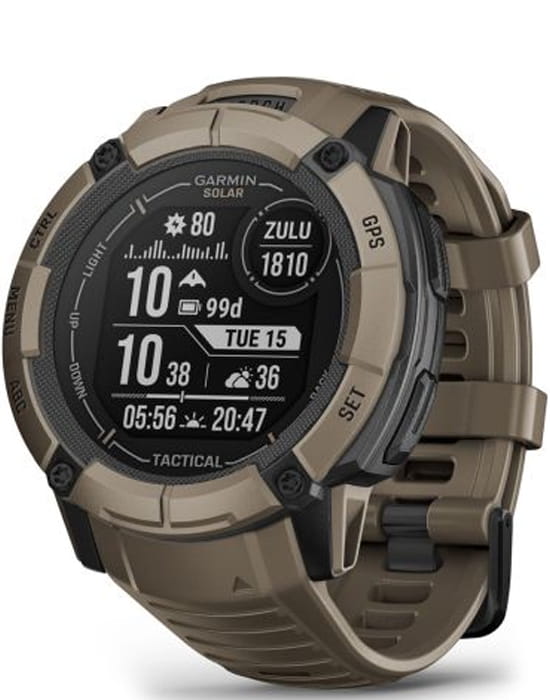 Умные многофункциональные мужские часы Garmin Instinct 2X Solar Tactical Edition 010-02805-02, электронный механизм с высокой точностью. Класс водозащиты: 100 метров, позволит плавать, нырять и заниматься другими водными видами спорта. Материал корпуса: Фиброармированный полимер Ударопрочный корпусУдаропрочный корпусМеханизм заключён в корпус, выполненный из современных материалов, устойчивых к ударам, механическим повреждениям и падению с высоты: инновационный пластик, карбон, нержавеющая сталь, титан.. Минеральное стеклоМинеральное стеклоМинеральное стекло представляет собой искусственно выращенный минерал кварца. Такое стекло отличается особой устойчивостью к повреждениям и царапинам. Уступает по некоторым качествам сапфировому стеклу. которое было химически усиленно. Экран с светодиодной подсветкойСветодиодная подсветкаСветодиодная или LED-подсветка обеспечивает появление яркого холодного свечения за счёт LED-элементов - маленьких лампочек. Они потребляют минимальное количество энергии, чаще всего можно встретить 1 светодиод, в нижней части циферблата..