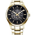 Мужские механические часы с минеральным стекломМинеральное стеклоМинеральное стекло представляет собой искусственно выращенный минерал кварца. Такое стекло отличается особой устойчивостью к повреждениям и царапинам. Уступает по некоторым качествам сапфировому стеклу. Greenwich Globe GW 056.20.31. Корпус часов изготовлен из стали с PVD-покрытиемPVDУльтратонкое покрытие наносится в технике вакуумного напыления, сочетает в себе нитрид титана особой прочности со слоем золота или оксида хрома. Несёт в себе декоративную или защитную функцию.. Стрелки с люминесцентным покрытиемЛюминесцентное покрытиеПозволяет считывать показания времени в темноте. Производители наносят на стрелки, часовые индексы, безель или поверхность циферблата светонакопительный состав, дающий холодное свечение.. Класс водозащиты: 100 метров, позволит плавать, нырять и заниматься другими водными видами спорта. Стальной браслет на раскладной застёжкеРаскладная застёжкаТакой тип застёжки используется только на браслетах из металла. Она никогда не раскрывается полностью, происходит разделение на 2 и более частей. Раскладывающая застёжка снизит вероятность потери часов к минимуму. с PVD-покрытиемPVDУльтратонкое покрытие наносится в технике вакуумного напыления, сочетает в себе нитрид титана особой прочности со слоем золота или оксида хрома. Несёт в себе декоративную или защитную функцию..