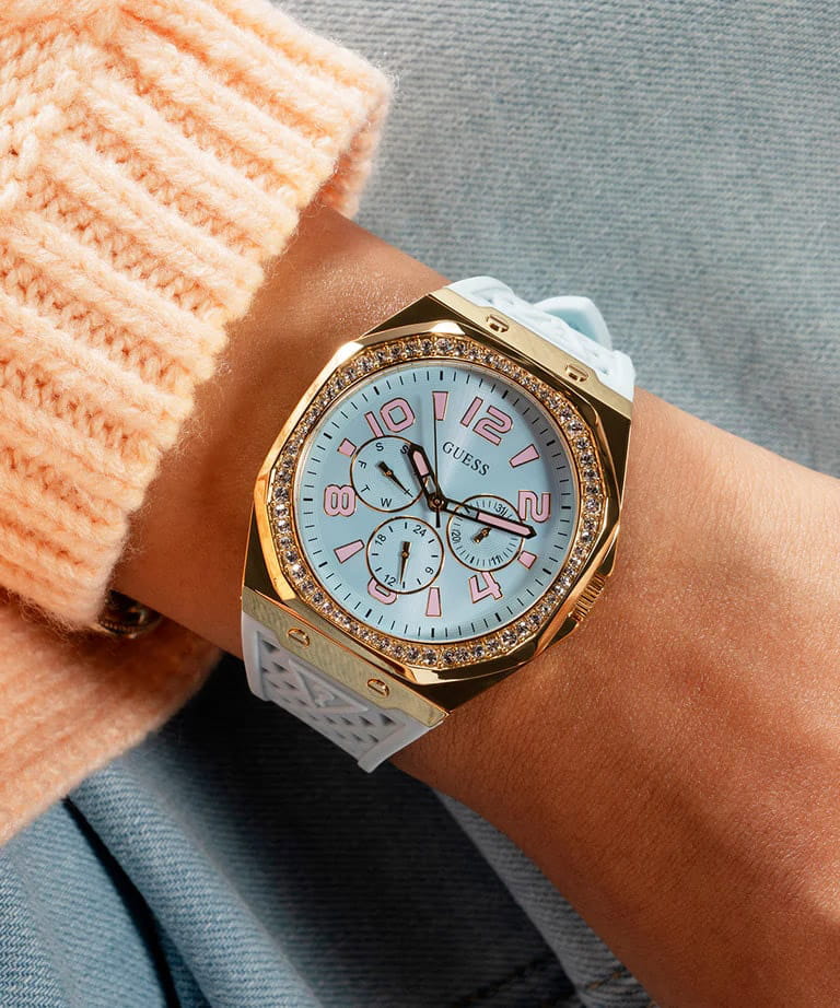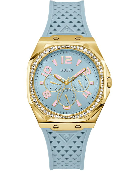 Женские наручные часы Guess Sport GW0694L1 с минеральным стекломМинеральное стеклоМинеральное стекло представляет собой искусственно выращенный минерал кварца. Такое стекло отличается особой устойчивостью к повреждениям и царапинам. Уступает по некоторым качествам сапфировому стеклу., кварцевый механизм с высокой точностью. Корпус часов изготовлен из нержавеющей стали с IP-покрытиемIP-покрытиеМетод ионного напыления. Демонстрирует повышенную устойчивость к истиранию, окислению и химическим веществам. Под воздействием высокого давления и температуры около 1500°C молекулы металла надёжно соединяются с частицами корпуса часов.. Стрелки с люминесцентным покрытиемЛюминесцентное покрытиеПозволяет считывать показания времени в темноте. Производители наносят на стрелки, часовые индексы, безель или поверхность циферблата светонакопительный состав, дающий холодное свечение.. Класс водозащиты: 30 метров, позволит защитить корпус от случайных брызг или капель дождя. Силиконовый ремешок.