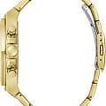 Мужские наручные часы Guess GW0899G2 – это сочетание элегантности и современного стиля. Они оснащены надежным кварцевым механизмом, который обеспечивает точность хода. Корпус часов выполнен из стали с PVD-покрытиемPVDУльтратонкое покрытие наносится в технике вакуумного напыления, сочетает в себе нитрид титана особой прочности со слоем золота или оксида хрома. Несёт в себе декоративную или защитную функцию. золотистого цвета, безельБезельВнешний ободок, закрепляющий стекло. В спортивных часах так называется поворотное кольцо с делениями на циферблате, выполняет роль таймера – замеряет отрезки времени на шкале. Неподвижный безель – элемент декора. Однонаправленно вращающийся безель на дайверских часах позволяет фиксировать моменты погружения и выныривания на поверхность. декорирован кристаллами и винтами, придающими модели особый характер. Золотистый циферблат инкрустирован кристаллами и оснащен метками в виде штрихов, что добавляет изысканности и блеска. Часы поддерживают 12-ти и 24-х часовой формат времени, а также оснащены календарем, показывающим число и день недели на отдельных циферблатах. Люминесцентное покрытиеЛюминесцентное покрытиеПозволяет считывать показания времени в темноте. Производители наносят на стрелки, часовые индексы, безель или поверхность циферблата светонакопительный состав, дающий холодное свечение. на стрелках обеспечивает отличную видимость в темноте. Стальной браслет с раскладной застежкойРаскладная застёжкаТакой тип застёжки используется только на браслетах из металла. Она никогда не раскрывается полностью, происходит разделение на 2 и более частей. Раскладывающая застёжка снизит вероятность потери часов к минимуму. гарантирует комфортное ношение и надежную фиксацию. Минеральное стеклоМинеральное стеклоМинеральное стекло представляет собой искусственно выращенный минерал кварца. Такое стекло отличается особой устойчивостью к повреждениям и царапинам. Уступает по некоторым качествам сапфировому стеклу. защищает циферблат от царапин, а водозащита 30WR предохраняет часы от случайных брызг и дождя. Эта модель станет отличным выбором для тех, кто ценит стиль и функциональность в одном аксессуаре.