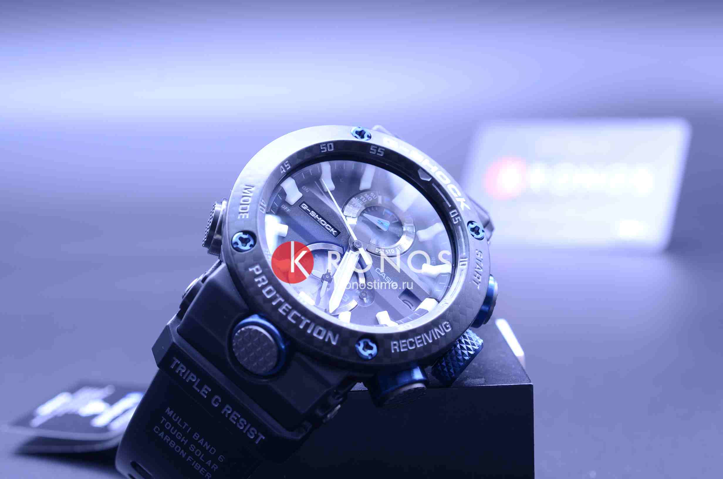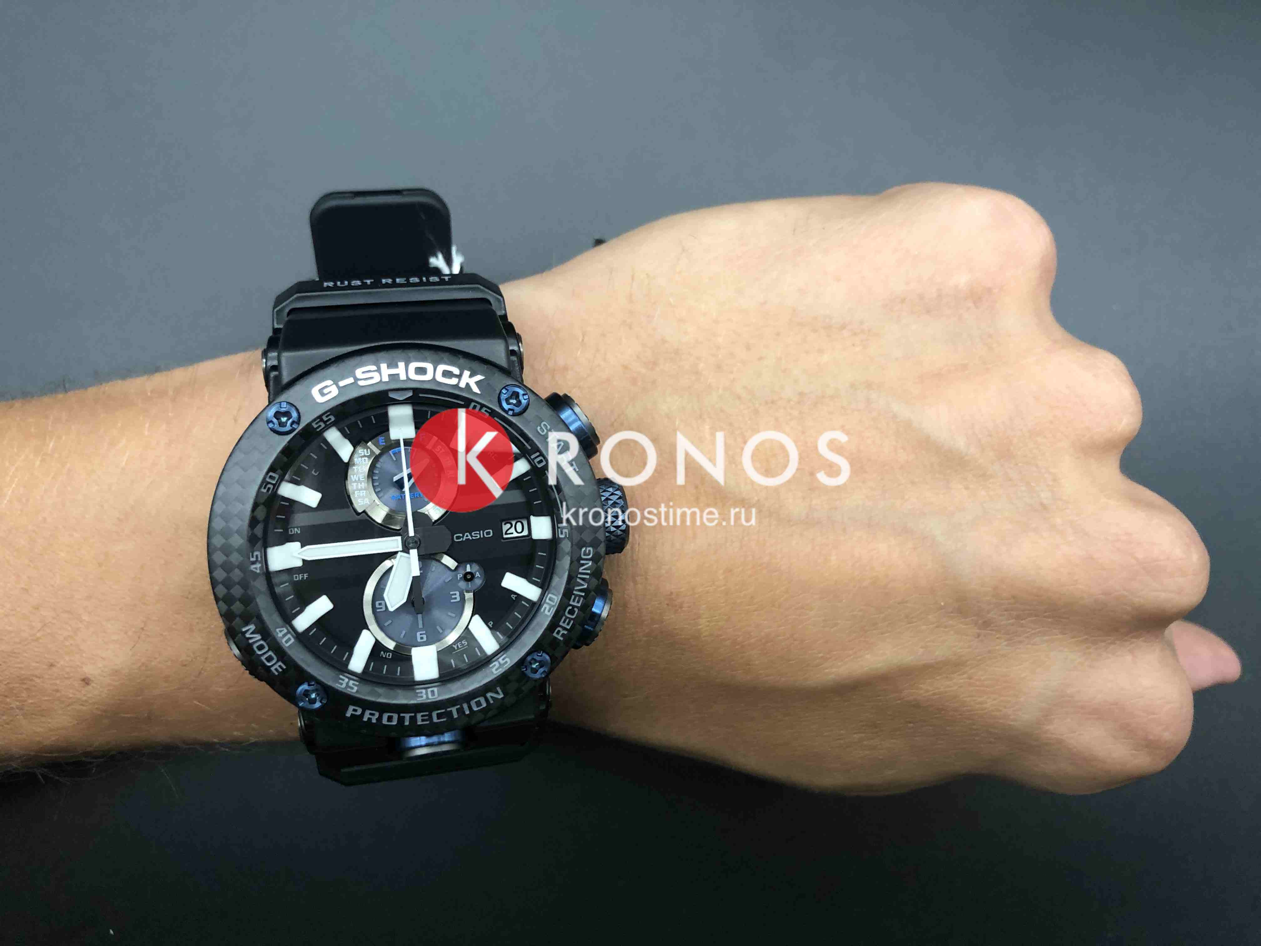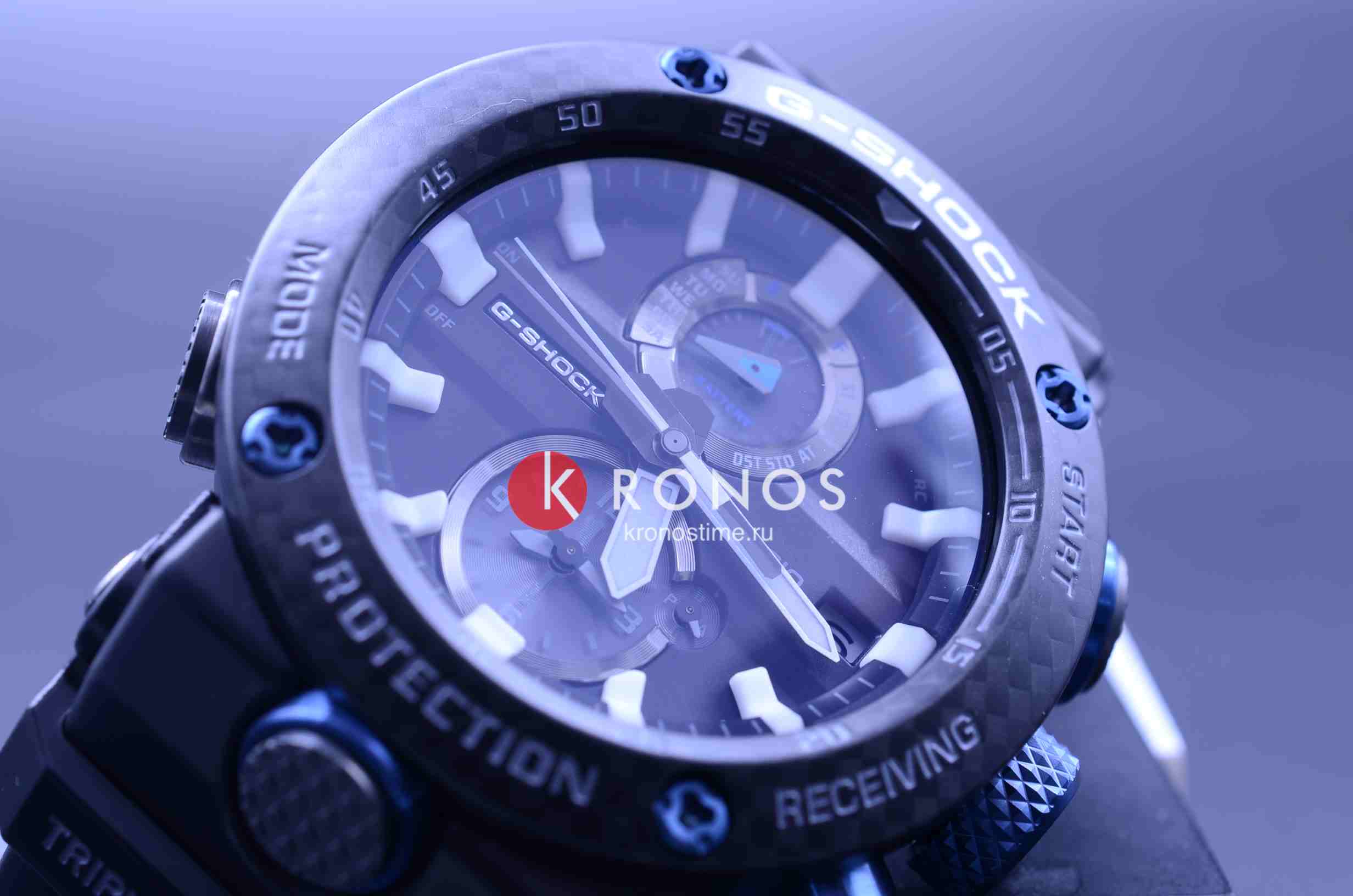 Внушительный аксессуар стильно смотрится на широком запястье, гармонично смотрятся крупные детали в голубом цвете. Задняя крышка здесь отсутствует, ударопрочный корпусУдаропрочный корпусМеханизм заключён в корпус, выполненный из современных материалов, устойчивых к ударам, механическим повреждениям и падению с высоты: инновационный пластик, карбон, нержавеющая сталь, титан. сделан из монолитного углеродного монокока, вдохновлённого конструкцией ранних самолётов. Он состоит из 52 карбоновых слоёв, уникальная текстура просматривается на боковых частях безеляБезельВнешний ободок, закрепляющий стекло. В спортивных часах так называется поворотное кольцо с делениями на циферблате, выполняет роль таймера – замеряет отрезки времени на шкале. Неподвижный безель – элемент декора. Однонаправленно вращающийся безель на дайверских часах позволяет фиксировать моменты погружения и выныривания на поверхность. – с успехом реализована технология Carbon Core GuardCarbon Core Guard Новейшая структура корпуса, разработанная Casio. Полиуретановая пластина дополнительно усилена карбоновыми вставками, что придаёт специальную защиту от механических повреждений. Карбон отличается лёгкостью и прочностью.. Полимерный ремешок тоже имеет усиление карбоновыми волокнами. Наручные часы обладают полезным функционалом: BluetoothBluetoothСовременная технология, позволяющая синхронизировать часы с телефоном и переносить данные. Часы с Bluetooth расширяют возможности вашего смартфона и делают его использование ещё более удобным., будильник, мировое времяМировое время Полезное часовое усложнение, отображающее время в основных городах и известных областях по всему миру, оно связано с часовыми поясами, удобно для путешественников и бизнесменов. , таймер, приём радиосигнала, питание от солнечной батареи . Сапфировое стекло с антибликовой обработкой. Яркая люминесцентная подсветкаЛюминесцентное покрытиеПозволяет считывать показания времени в темноте. Производители наносят на стрелки, часовые индексы, безель или поверхность циферблата светонакопительный состав, дающий холодное свечение.. Габариты: 50,1 x 46,4 x 16,9 мм.
