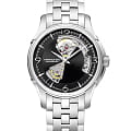 Мужские часы-скелетоны Hamilton Jazzmaster Open Heart Auto H32565135 с автоматическим механизмом Н-10. Корпус часов изготовлен из нержавеющей стали. Стрелки и метки с люминесцентным покрытиемЛюминесцентное покрытиеПозволяет считывать показания времени в темноте. Производители наносят на стрелки, часовые индексы, безель или поверхность циферблата светонакопительный состав, дающий холодное свечение.. Сапфировое стеклоСапфировое стеклоПрочный и надёжный материал из кристалла сапфира синтетического происхождения, характеризующийся особой твёрдостью и устойчивостью к царапинам и повреждениям. с антибликовым покрытием. Стальной браслет на застёжке-бабочке с кнопкамиЗастёжка "бабочка"Такой вид застёжки дополняется предохранителями, помогающими избежать случайного раскрытия браслета. Обладают изящным исполнением. . Уровень влагозащиты: 50 метров, позволит защитить корпус от случайных брызг или капель дождя. Стальной браслет на застёжке-бабочке с кнопкамиЗастёжка "бабочка"Такой вид застёжки дополняется предохранителями, помогающими избежать случайного раскрытия браслета. Обладают изящным исполнением. .
