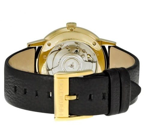 Мужские механические швейцарские часы Hamilton American Classic Intra-Matic Auto H38475751, механический механизм (автоматический калибр) с высокой точностью. Сапфировое стекло устойчивое к появлению царапин, обладающее высокой прозрачностью. Класс водозащиты: 50 метров, позволит защитить корпус от случайных брызг или капель дождя. Корпус часов изготовлен из стали, золотистого цвета.
