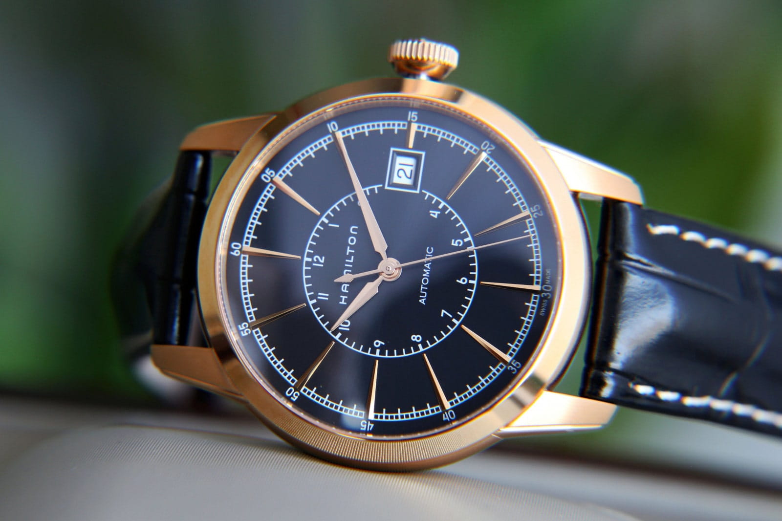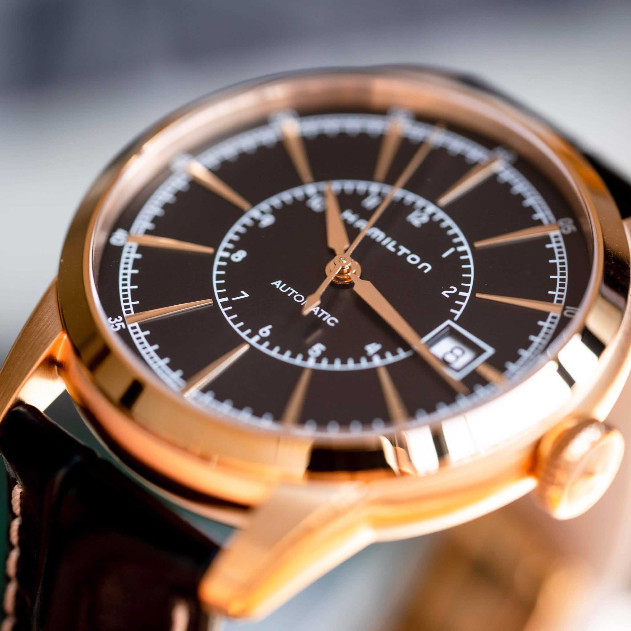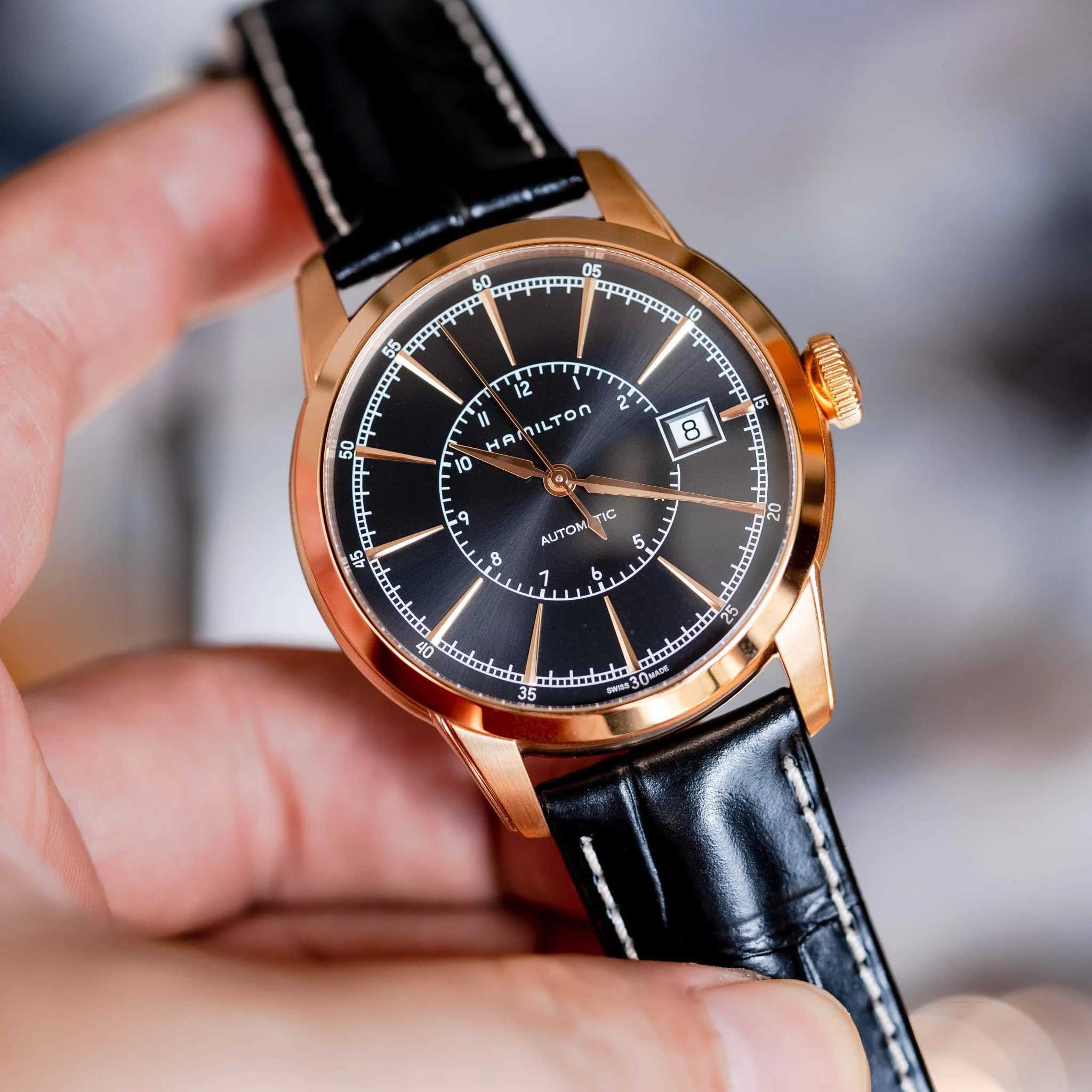 Мужские механические швейцарские часы с прозрачной задней крышкой Hamilton American Classic Railroad Auto H40505731, механический механизм (автоматический калибр) с высокой точностью. Сапфировое стеклоСапфировое стеклоПрочный и надёжный материал из кристалла сапфира синтетического происхождения, характеризующийся особой твёрдостью и устойчивостью к царапинам и повреждениям. устойчивое к появлению царапин, обладающее высокой прозрачностью. Класс водозащиты: 50 метров, позволит защитить корпус от случайных брызг или капель дождя. Корпус часов изготовлен из стали с PVD-покрытиемPVDУльтратонкое покрытие наносится в технике вакуумного напыления, сочетает в себе нитрид титана особой прочности со слоем золота или оксида хрома. Несёт в себе декоративную или защитную функцию.. Кожаный ремешок с раскладной застёжкойРаскладная застёжкаТакой тип застёжки используется только на браслетах из металла. Она никогда не раскрывается полностью, происходит разделение на 2 и более частей. Раскладывающая застёжка снизит вероятность потери часов к минимуму.. Окошко даты находится в положении 3 часа.