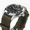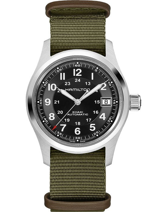 Hamilton Khaki Field Auto 38 mm “Call of Duty” — надёжные полевые часы с военным характером, рассчитанные на долгие годы службы. Чёрный циферблат с крупными арабскими цифрами читается мгновенно, а внутренний 24-часовой трек подчёркивает утилитарность и точность военного стиля. Корпус из нержавеющей стали аккуратно сбалансирован по форме и обладает высокой прочностью. Поверх циферблата установлено сапфировое стеклоСапфировое стеклоПрочный и надёжный материал из кристалла сапфира синтетического происхождения, характеризующийся особой твёрдостью и устойчивостью к царапинам и повреждениям., устойчивое к царапинам и сохраняющее идеальную прозрачность даже при активной носке. Красная секундная стрелка создаёт лёгкий динамичный акцент, не нарушая строгий характер модели. Надёжный ремень NATO в армейском зелёном цвете комфортно сидит на руке и подходит как для повседневного образа, так и для активных условий. Сердце часов — автоматический механизм H-10 с впечатляющим запасом хода до 80 часов, что делает модель практичной и готовой к длительным нагрузкам. Hamilton Khaki Field Auto 38 mm “Call of Duty” — сочетание военной практичности, современной инженерии и максимальной надёжности в компактном формате.