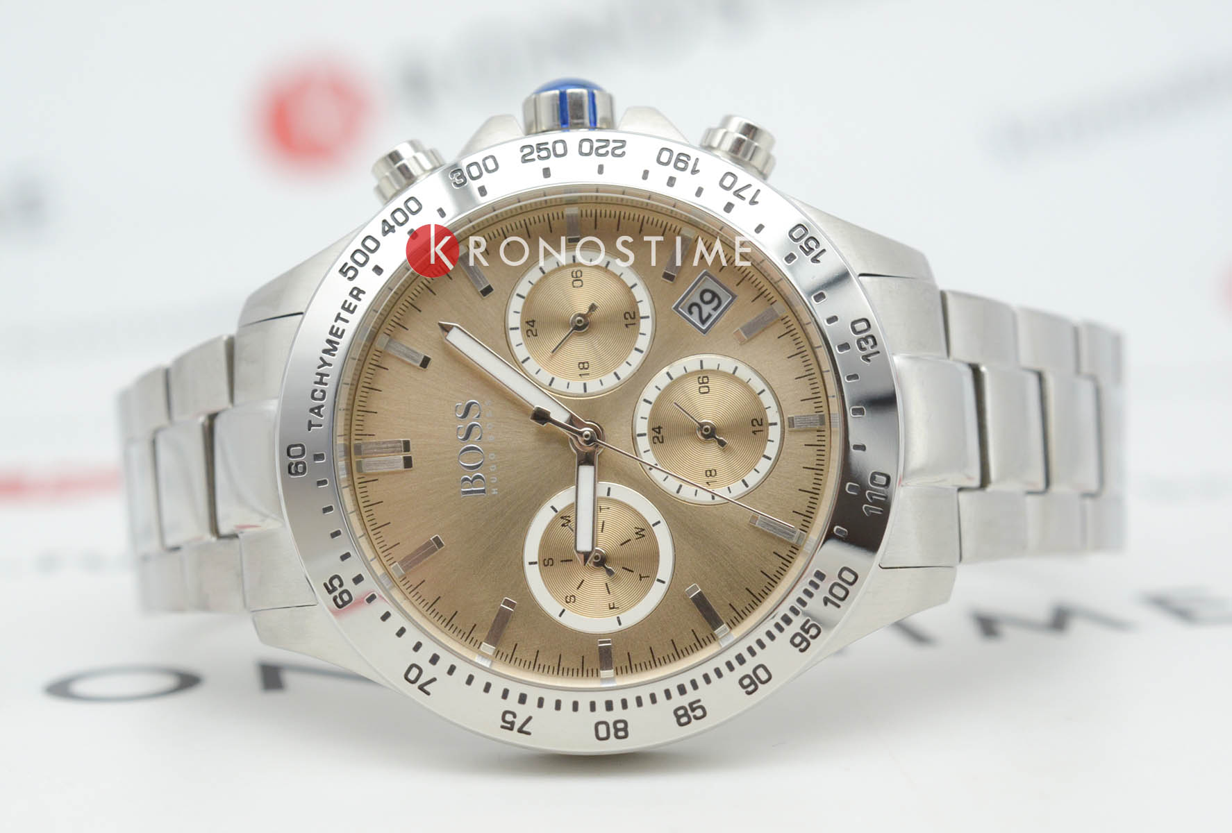 Элегантные женские часы Hugo Boss HB1502615 из коллекции Novia Sport Lux представлены в стальном корпусе диаметром 38 мм с эффектным розовым цифербалтом в технике Sunray, защищённым прочным минеральным стекломМинеральное стеклоМинеральное стекло представляет собой искусственно выращенный минерал кварца. Такое стекло отличается особой устойчивостью к повреждениям и царапинам. Уступает по некоторым качествам сапфировому стеклу.. Модель оснащена швейцарским кварцевым механизмом с полезными функциями: индикацией даты между 4 и 5 часами, вторым часовым поясомВторой часовой поясФункция, позволяющая отображать время двух часовых поясов одновременно. в 24-часовом формате и тахиметрической шкалойТахиметрРазмеченная шкала, располагается на ободке или безеле часов. Тахиметр позволяет рассчитать скорость на определённом участке пути, расстояние измеряется в километрах или милях.. Спортивный характер подчёркивает рифлёная заводная головка с защитой, а стальной браслет с раскладывающейся застёжкой обеспечивает комфортную посадку. Ударопрочная конструкцияУдаропрочный корпусМеханизм заключён в корпус, выполненный из современных материалов, устойчивых к ударам, механическим повреждениям и падению с высоты: инновационный пластик, карбон, нержавеющая сталь, титан. с водонепроницаемостью 50 метров делает часы устойчивыми к повседневным нагрузкам.