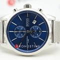 Мужские кварцевые часы Hugo Boss Jet HB1513441 представлены в 40-мм корпусе из нержавеющей стали серебристого цвета. Модель оснащена кварцевым механизмом с функцией хронографаХронографФункция позволяет измерять отрезки времени с особой точностью: часы, минуты, секунды. Верным признаком хронографа является наличие на циферблате 3 дополнительных окошек-счётчиков. и секундомеромСекундомерСекундоме́р — прибор, способный измерять интервалы времени с точностью до долей секунды., а также окошком даты на позиции 3 часа. Синий циферблат со штриховыми метками защищен устойчивым к царапинам минеральным стекломМинеральное стеклоМинеральное стекло представляет собой искусственно выращенный минерал кварца. Такое стекло отличается особой устойчивостью к повреждениям и царапинам. Уступает по некоторым качествам сапфировому стеклу.. Стальной браслет выполнен в технике "миланское плетение" и дополнен раскладной застёжкойРаскладная застёжкаТакой тип застёжки используется только на браслетах из металла. Она никогда не раскрывается полностью, происходит разделение на 2 и более частей. Раскладывающая застёжка снизит вероятность потери часов к минимуму.. Часы обладают водонепроницаемостью WR50 (5 ATM), что обеспечивает защиту от брызг воды и дождя.