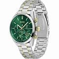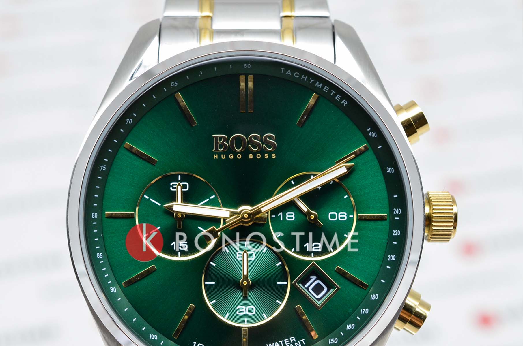 Мужские часы Hugo Boss Champion HB1513878 представлены в круглом 44-мм корпусе из нержавеющей стали. Изысканные часы оснащены кварцевым механизмом с функциями хронографаХронографФункция позволяет измерять отрезки времени с особой точностью: часы, минуты, секунды. Верным признаком хронографа является наличие на циферблате 3 дополнительных окошек-счётчиков., тахиметраТахиметрРазмеченная шкала, располагается на ободке или безеле часов. Тахиметр позволяет рассчитать скорость на определённом участке пути, расстояние измеряется в километрах или милях. и секундомераСекундомерСекундоме́р — прибор, способный измерять интервалы времени с точностью до долей секунды., а также индикацией даты. Эффектный зеленый циферблат с метками в виде штрихов защищен устойчивым к царапинам минеральным стекломМинеральное стеклоМинеральное стекло представляет собой искусственно выращенный минерал кварца. Такое стекло отличается особой устойчивостью к повреждениям и царапинам. Уступает по некоторым качествам сапфировому стеклу.. Браслет из стали серебристого цвета c PVD-покрытиемPVDУльтратонкое покрытие наносится в технике вакуумного напыления, сочетает в себе нитрид титана особой прочности со слоем золота или оксида хрома. Несёт в себе декоративную или защитную функцию. дополнен раскладной застёжкойРаскладная застёжкаТакой тип застёжки используется только на браслетах из металла. Она никогда не раскрывается полностью, происходит разделение на 2 и более частей. Раскладывающая застёжка снизит вероятность потери часов к минимуму.. Водонепроницаемость 100 метров (10 ATM) обеспечивает защиту от брызг и дождя. Hugo Boss Champion HB1513878 — это не просто часы, а настоящее произведение часового искусства, способное подчеркнуть вашу индивидуальность и статус.