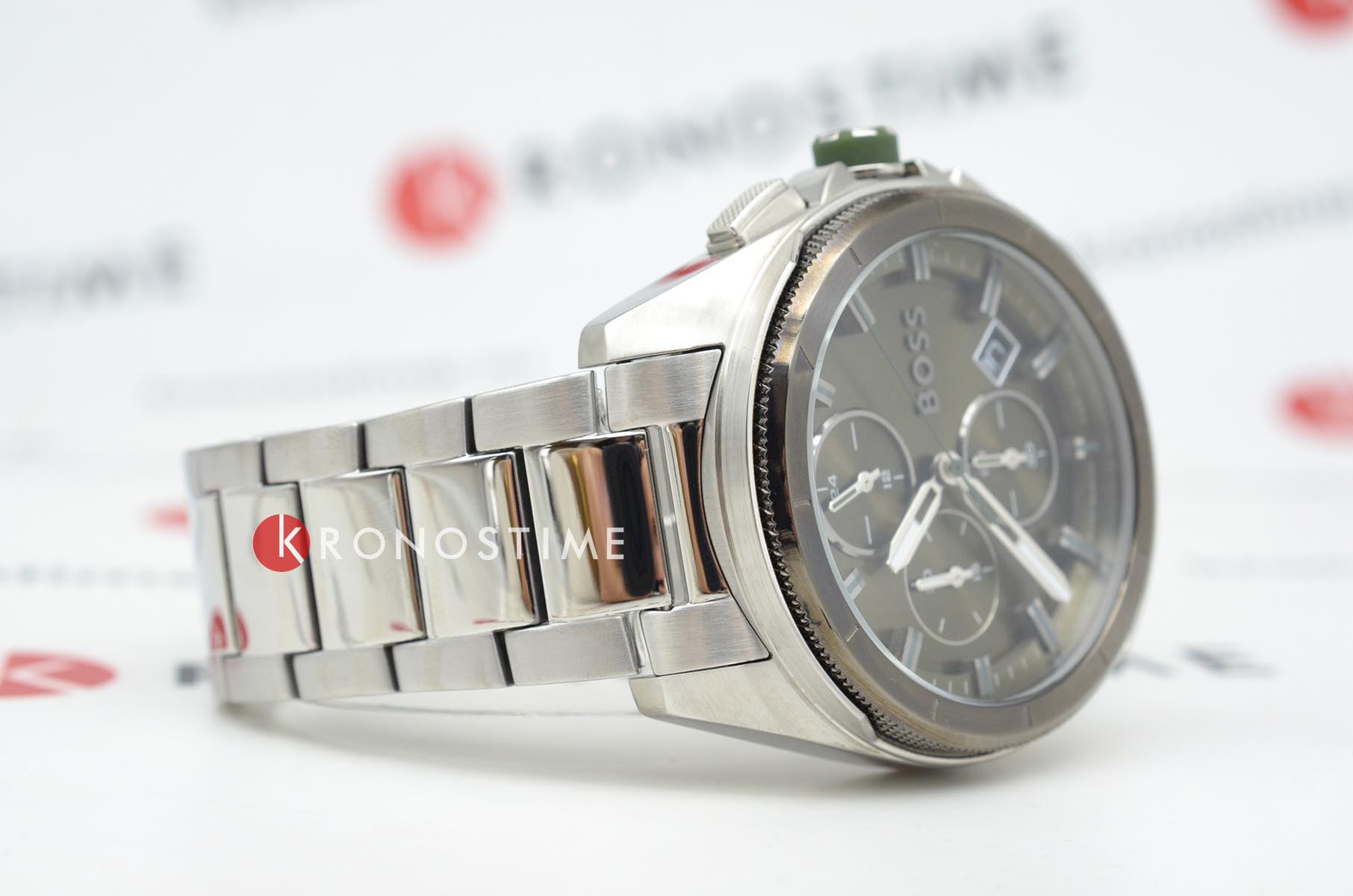 Мужские часы Hugo Boss Volane HB 1513951 представлены в круглом 44-мм корпусе из нержавеющей стали. Оснащены кварцевым механизмом с функциями хронографаХронографФункция позволяет измерять отрезки времени с особой точностью: часы, минуты, секунды. Верным признаком хронографа является наличие на циферблате 3 дополнительных окошек-счётчиков. и секундомеромСекундомерСекундоме́р — прибор, способный измерять интервалы времени с точностью до долей секунды.. Зеленый циферблат защищен устойчивым к царапинам минеральным стекломМинеральное стеклоМинеральное стекло представляет собой искусственно выращенный минерал кварца. Такое стекло отличается особой устойчивостью к повреждениям и царапинам. Уступает по некоторым качествам сапфировому стеклу.. Стальной браслет серебристого цвета дополнен раскладной застёжкойРаскладная застёжкаТакой тип застёжки используется только на браслетах из металла. Она никогда не раскрывается полностью, происходит разделение на 2 и более частей. Раскладывающая застёжка снизит вероятность потери часов к минимуму., а стрелки покрыты люминесцентным составомЛюминесцентное покрытиеПозволяет считывать показания времени в темноте. Производители наносят на стрелки, часовые индексы, безель или поверхность циферблата светонакопительный состав, дающий холодное свечение. для видимости в темноте. Водонепроницаемость 100 метров (10 ATM) позволяет использовать часы для плавания.