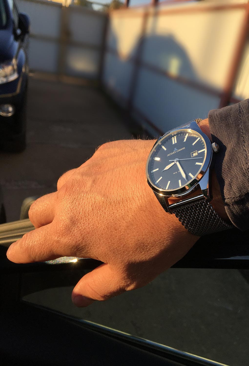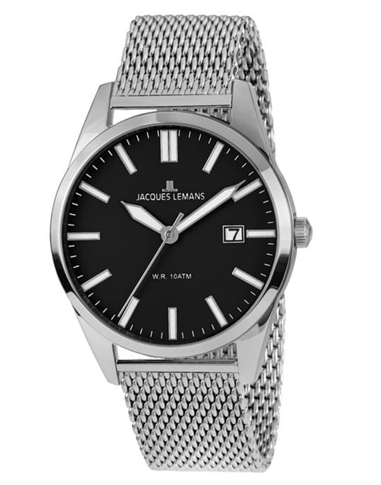 Наручные часы Jacques Lemans с классической раскладной застёжкойРаскладная застёжкаТакой тип застёжки используется только на браслетах из металла. Она никогда не раскрывается полностью, происходит разделение на 2 и более частей. Раскладывающая застёжка снизит вероятность потери часов к минимуму. призваны ставить на первое место индивидуальный стиль владельца, классическая элегантность придётся по вкусу каждому. Брендовые часы привлекают минималистичным дизайном, отсутствие вычурности и обилия декорирующих элементов делают модель лучшим решением для ежедневного применения. Аксессуар можно носить с деловыми костюмами и повседневной одеждой, он органично сочетается как с классическими брюками, так и с рваными джинсами. Это настоящее часовое искусство высокого качества, часы считаются актуальным вариантом на все времена и с идеальной точностью показывают время благодаря надёжному японскому механизму.
