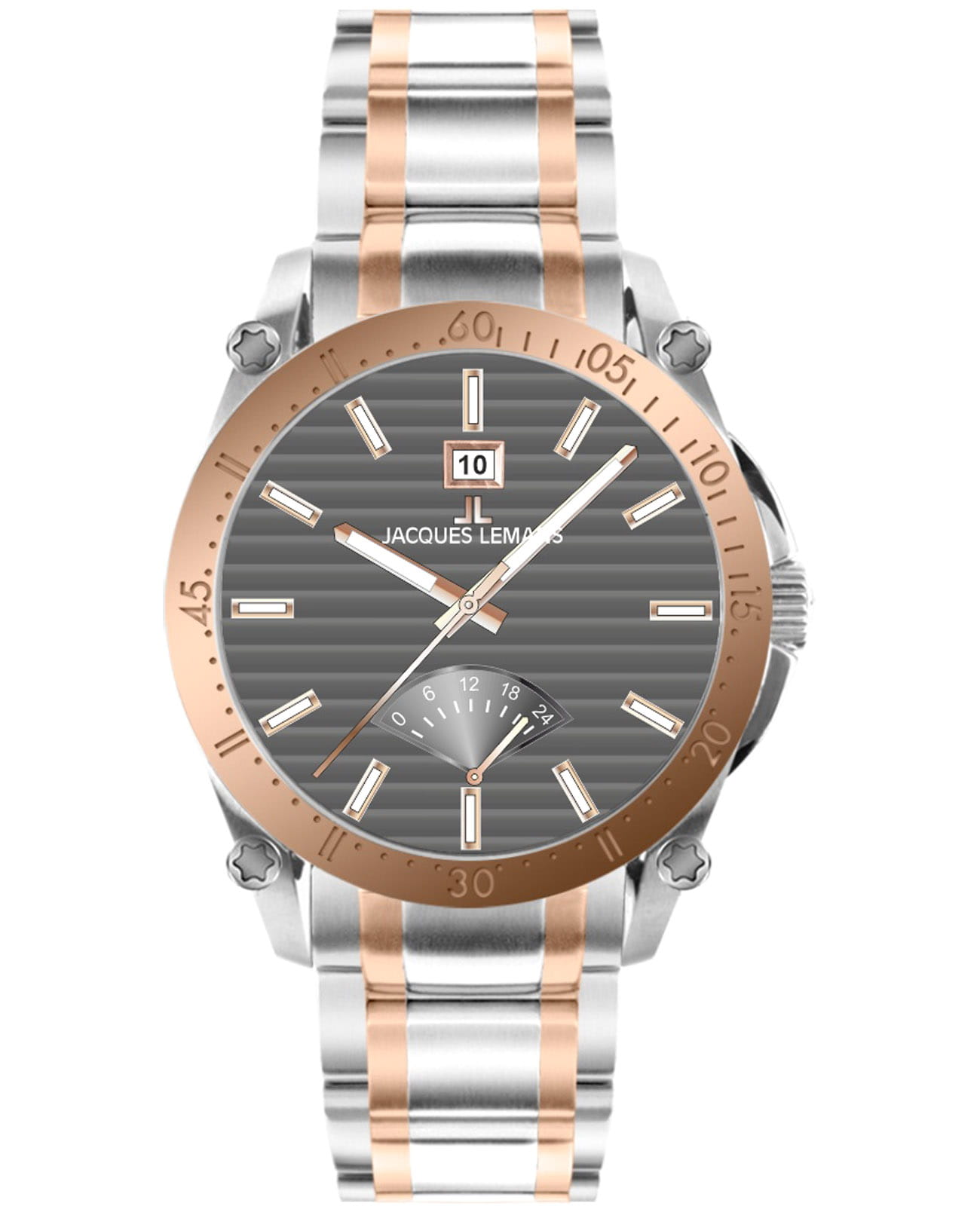 Мужские кварцевые часы Jacques Lemans 1-2202O – лаконичная красота и изысканная элегантность. Оригинальная модель с классическим оформлением станет превосходным завершением образа, наделив его индивидуальным характером. Корпус выполнен из нержавеющей стали, диаметром 44 мм, что обеспечивает долговечность и утончённый внешний вид. Минеральное стеклоМинеральное стеклоМинеральное стекло представляет собой искусственно выращенный минерал кварца. Такое стекло отличается особой устойчивостью к повреждениям и царапинам. Уступает по некоторым качествам сапфировому стеклу. с сапфировым напылением защищает циферблат от царапин. Стальной браслет с частичным PVD-покрытиемPVDУльтратонкое покрытие наносится в технике вакуумного напыления, сочетает в себе нитрид титана особой прочности со слоем золота или оксида хрома. Несёт в себе декоративную или защитную функцию. на раскладной застёжкеРаскладная застёжкаТакой тип застёжки используется только на браслетах из металла. Она никогда не раскрывается полностью, происходит разделение на 2 и более частей. Раскладывающая застёжка снизит вероятность потери часов к минимуму. обеспечивает комфортное ношение. На неподвижный безельБезельВнешний ободок, закрепляющий стекло. В спортивных часах так называется поворотное кольцо с делениями на циферблате, выполняет роль таймера – замеряет отрезки времени на шкале. Неподвижный безель – элемент декора. Однонаправленно вращающийся безель на дайверских часах позволяет фиксировать моменты погружения и выныривания на поверхность. с PVD-покрытиемPVDУльтратонкое покрытие наносится в технике вакуумного напыления, сочетает в себе нитрид титана особой прочности со слоем золота или оксида хрома. Несёт в себе декоративную или защитную функцию. нанесена минутная шкала. Водозащита 100 метров позволит плавать, нырять и заниматься другими водными видами спорта. Стрелки и метки с люминесцентным покрытиемЛюминесцентное покрытиеПозволяет считывать показания времени в темноте. Производители наносят на стрелки, часовые индексы, безель или поверхность циферблата светонакопительный состав, дающий холодное свечение. позволяющие легко определять время даже в темноте. Окошко даты находится в положении 12 часов. Индикатор 24-х часов вынесен на отдельный циферблат. Рифленая заводная головка с защитой. Это аксессуар для мужчины, который ценит классический стиль и функциональность.