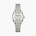 Jacques Philippe Radiante JPQLS687398 — изящная женская модель коллекции Radiante с кварцевым механизмом, сочетающая классический стиль и практичность. Корпус диаметром 33 мм выполнен из нержавеющей стали и полированными поверхностями, безельБезельВнешний ободок, закрепляющий стекло. В спортивных часах так называется поворотное кольцо с делениями на циферблате, выполняет роль таймера – замеряет отрезки времени на шкале. Неподвижный безель – элемент декора. Однонаправленно вращающийся безель на дайверских часах позволяет фиксировать моменты погружения и выныривания на поверхность. с PVDPVDУльтратонкое покрытие наносится в технике вакуумного напыления, сочетает в себе нитрид титана особой прочности со слоем золота или оксида хрома. Несёт в себе декоративную или защитную функцию. инкрустирован кристаллами, что придаёт часам утончённый блеск. Водозащита до 5 атм (50 м) позволяет носить модель в повседневных условиях. Выпуклое сапфировое стеклоСапфировое стеклоПрочный и надёжный материал из кристалла сапфира синтетического происхождения, характеризующийся особой твёрдостью и устойчивостью к царапинам и повреждениям. обеспечивает защиту от царапин и сохраняет высокую прозрачность, делая циферблат легко читаемым. Модель оснащена точным швейцарским кварцевым механизмом с индикацией часов, минут и секунд. Циферблат оформлен в лаконичном стиле с аккуратными метками, а браслет из нержавеющей стали с частичным PVDPVDУльтратонкое покрытие наносится в технике вакуумного напыления, сочетает в себе нитрид титана особой прочности со слоем золота или оксида хрома. Несёт в себе декоративную или защитную функцию.-покрытием гармонично завершает образ, подчёркивая универсальность и элегантность этих часов.