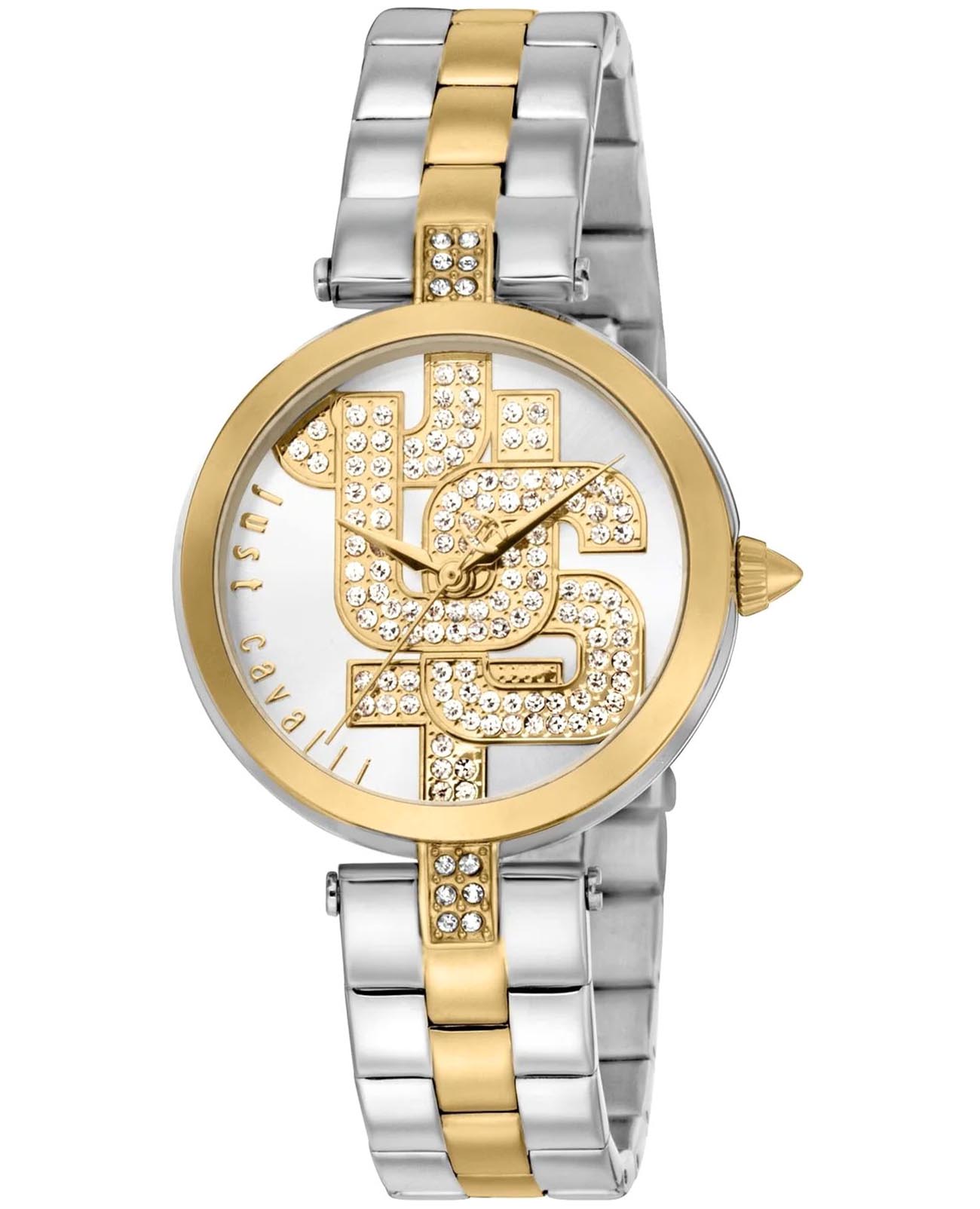 Элегантные женские часы Just Cavalli JC1L241M0085 с минеральным стекломМинеральное стеклоМинеральное стекло представляет собой искусственно выращенный минерал кварца. Такое стекло отличается особой устойчивостью к повреждениям и царапинам. Уступает по некоторым качествам сапфировому стеклу., кварцевый механизм с высокой точностью. БезельБезельВнешний ободок, закрепляющий стекло. В спортивных часах так называется поворотное кольцо с делениями на циферблате, выполняет роль таймера – замеряет отрезки времени на шкале. Неподвижный безель – элемент декора. Однонаправленно вращающийся безель на дайверских часах позволяет фиксировать моменты погружения и выныривания на поверхность. с PVD-покрытиемPVDУльтратонкое покрытие наносится в технике вакуумного напыления, сочетает в себе нитрид титана особой прочности со слоем золота или оксида хрома. Несёт в себе декоративную или защитную функцию. и циферблат украшен кристаллами. Браслет часов изготовлен из стали с частичным PVD-покрытиемPVDУльтратонкое покрытие наносится в технике вакуумного напыления, сочетает в себе нитрид титана особой прочности со слоем золота или оксида хрома. Несёт в себе декоративную или защитную функцию.. Корпус часов изготовлен из стали. Класс водозащиты: 50 метров, позволит защитить корпус от случайных брызг или капель дождя.