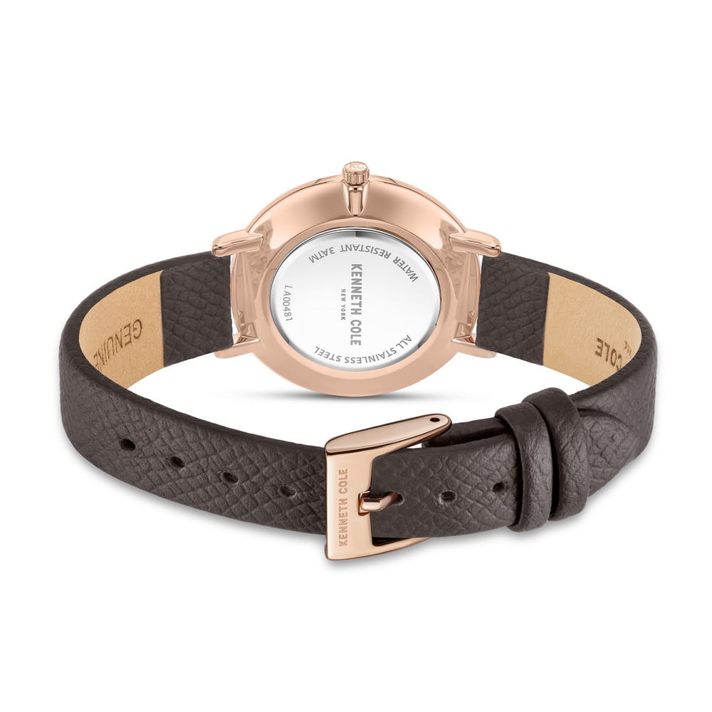 Женские кварцевые часы Kenneth Cole KCWLA0048103 — это элегантный аксессуар, подчеркивающий женственность и стиль. Корпус диаметром 34 мм выполнен из стали с IP-покрытиемIP-покрытиеМетод ионного напыления. Демонстрирует повышенную устойчивость к истиранию, окислению и химическим веществам. Под воздействием высокого давления и температуры около 1500°C молекулы металла надёжно соединяются с частицами корпуса часов. розового золота. Циферблат в тон корпуса украшен вставками из стразов из стекла, придающими сияние и изысканность. Циферблат защищён минеральным стекломМинеральное стеклоМинеральное стекло представляет собой искусственно выращенный минерал кварца. Такое стекло отличается особой устойчивостью к повреждениям и царапинам. Уступает по некоторым качествам сапфировому стеклу.. Часы оснащены ремешком из натуральной кожи коричневого цвета с классической пряжкой. Водонепроницаемость 30 м позволяет использовать часы в повседневных условиях, защищая от случайных брызг и капель дождя. Утончённый образ и внимание к деталям делают эти часы идеальным дополнением к любому образу.