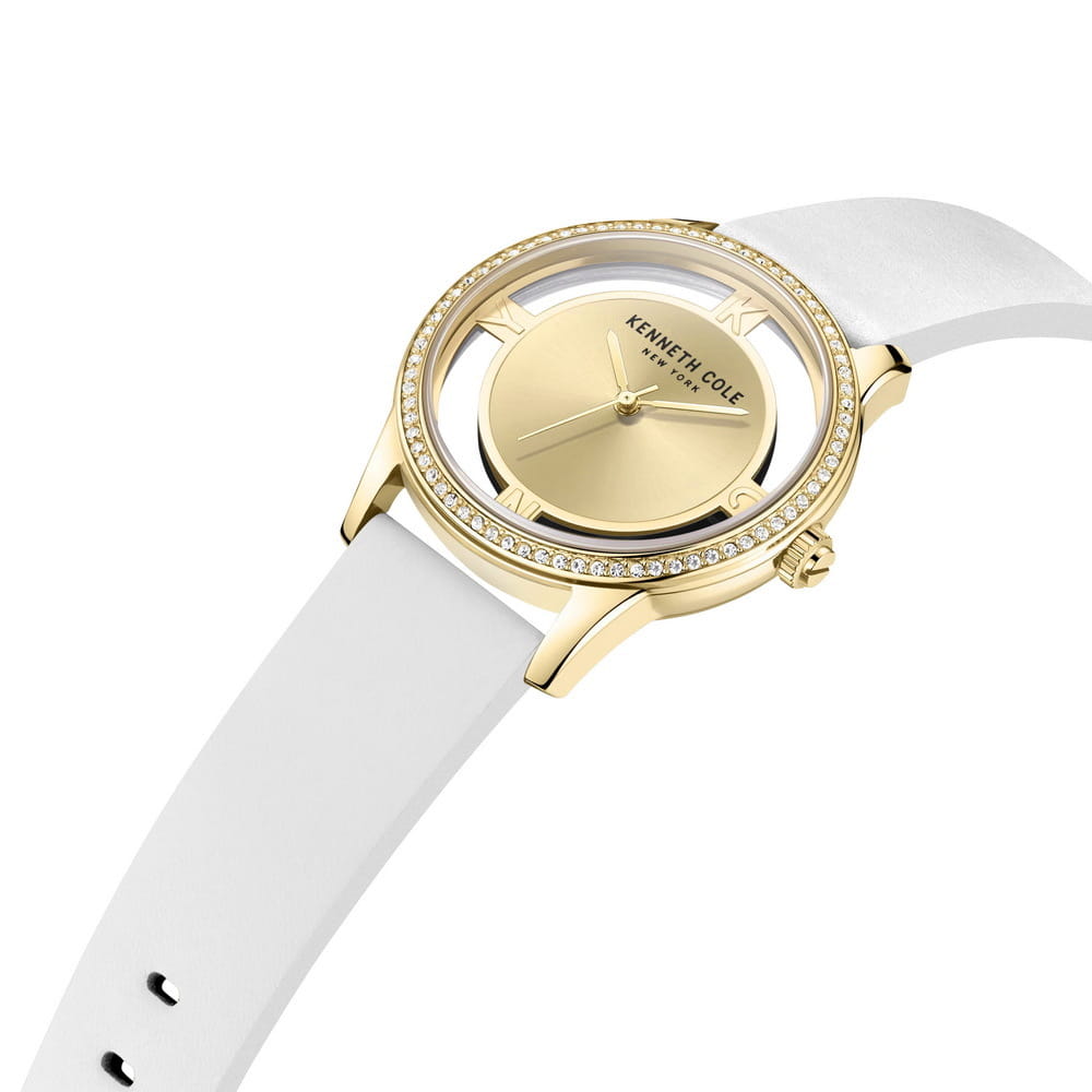 Женские кварцевые часы Kenneth Cole KCWLA2220106 — это изысканный аксессуар, сочетающий элегантность и современный дизайн. Корпус диаметром 36 мм выполнен из стали с IP-покрытиемIP-покрытиеМетод ионного напыления. Демонстрирует повышенную устойчивость к истиранию, окислению и химическим веществам. Под воздействием высокого давления и температуры около 1500°C молекулы металла надёжно соединяются с частицами корпуса часов. золотого цвета. Циферблат украшен вставками из стразов из стекла, придающими сияние и женственность. Циферблат защищён минеральным стекломМинеральное стеклоМинеральное стекло представляет собой искусственно выращенный минерал кварца. Такое стекло отличается особой устойчивостью к повреждениям и царапинам. Уступает по некоторым качествам сапфировому стеклу.. Особенностью модели является прозрачный корпус, добавляющий оригинальности дизайну. Часы оснащены ремешком из натуральной кожи белого цвета с классической пряжкой. Водонепроницаемость 30 м позволяет использовать часы в повседневных условиях, защищая от случайных брызг и капель дождя. Утончённый стиль и необычные детали делают эти часы идеальным выбором для тех, кто ценит индивидуальность.