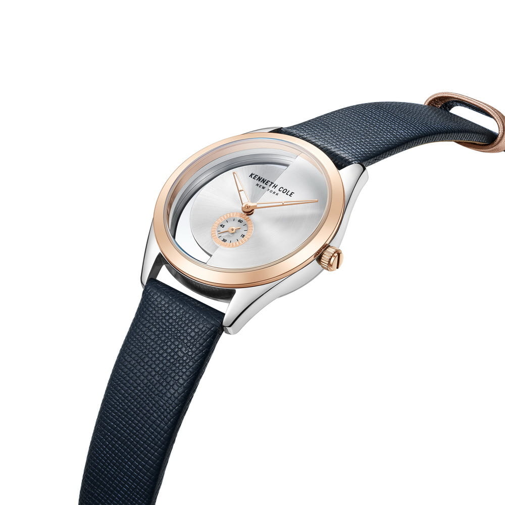 Женские кварцевые часы Kenneth Cole KCWLA2223105 — это стильный и необычный аксессуар с современным дизайном. Корпус диаметром 36 мм выполнен из нержавеющей стали. Безель с IP-покрытиемIP-покрытиеМетод ионного напыления. Демонстрирует повышенную устойчивость к истиранию, окислению и химическим веществам. Под воздействием высокого давления и температуры около 1500°C молекулы металла надёжно соединяются с частицами корпуса часов. розового золота. Циферблат стального цвета дополнен малой секундной стрелкой, что придаёт классическому дизайну изысканности. Циферблат защищён минеральным стекломМинеральное стеклоМинеральное стекло представляет собой искусственно выращенный минерал кварца. Такое стекло отличается особой устойчивостью к повреждениям и царапинам. Уступает по некоторым качествам сапфировому стеклу.. Особенностью модели является прозрачный корпус, добавляющий оригинальности и визуальной лёгкости. Часы оснащены ремешком из натуральной кожи синего цвета с классической пряжкой. Водонепроницаемость 30 м позволяет использовать часы в повседневных условиях, защищая от случайных брызг и капель дождя. Уникальный внешний вид и внимание к деталям делают эти часы идеальным выбором для тех, кто ценит индивидуальность.