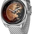 Российские мужские механические часы Космос D 113.1 - Суперлуние с автоподзаводом оснащены надежным механизмом TMI. Прямоугольный корпус из нержавеющей стали размером 50x44 мм защищен прочным минеральным стекломМинеральное стеклоМинеральное стекло представляет собой искусственно выращенный минерал кварца. Такое стекло отличается особой устойчивостью к повреждениям и царапинам. Уступает по некоторым качествам сапфировому стеклу.. Модель имеет класс водозащиты 100 метров, позволит плавать, заниматься другими водными видами спорта. циферблат дополнен функцией отображения даты. Часы комплектуются браслетом из нержавеющей стали с миланским плетением на раскладном замкеРаскладной замокДанный вариант застежки используется только на часах с металлическим браслетом. Отличительная особенность такого крепления в том, что длина браслета становится универсальной и вы можете самостоятельно отрегулировать нужный вам размер – застежка просто двигается по браслету часов.. Уникальный дизайн модели отражает тематику космических полетов, делая эти часы не только функциональным аксессуаром, но и стильным элементом гардероба для современного мужчины.