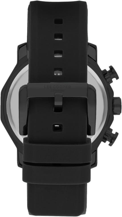 Lee Cooper LC07631.651 — элегантная модель с функциональными возможностями для повседневного использования. Корпус из суперметалла с IP-покрытиемIP-покрытиеМетод ионного напыления. Демонстрирует повышенную устойчивость к истиранию, окислению и химическим веществам. Под воздействием высокого давления и температуры около 1500°C молекулы металла надёжно соединяются с частицами корпуса часов. черного цвета и диаметром 49 мм придаёт часам классический и современный вид. Циферблат защищён минеральным стекломМинеральное стеклоМинеральное стекло представляет собой искусственно выращенный минерал кварца. Такое стекло отличается особой устойчивостью к повреждениям и царапинам. Уступает по некоторым качествам сапфировому стеклу., устойчивым к царапинам, хорошо может выдержать небольшие удары и падения. Стильный циферблат оформлен изысканными индексами и дополнен окошками даты, дня недели и 24-часового индикатора, а также аккуратными метками и стрелками с люминесцентным покрытиемЛюминесцентное покрытиеПозволяет считывать показания времени в темноте. Производители наносят на стрелки, часовые индексы, безель или поверхность циферблата светонакопительный состав, дающий холодное свечение., что гарантирует читаемость даже в условиях недостаточного освещения. Функция второго часового поясаВторой часовой поясФункция, позволяющая отображать время двух часовых поясов одновременно. делает часы удобными для путешественников. Часы работают на кварцевом механизме, обеспечивающем точность хода. Каучуковый ремешок на стандартной застёжке гарантирует удобную посадку и надёжную фиксацию на запястье. Водозащита 50 метров защищает часы от брызг и дождя, делая их подходящими для повседневного использования.
