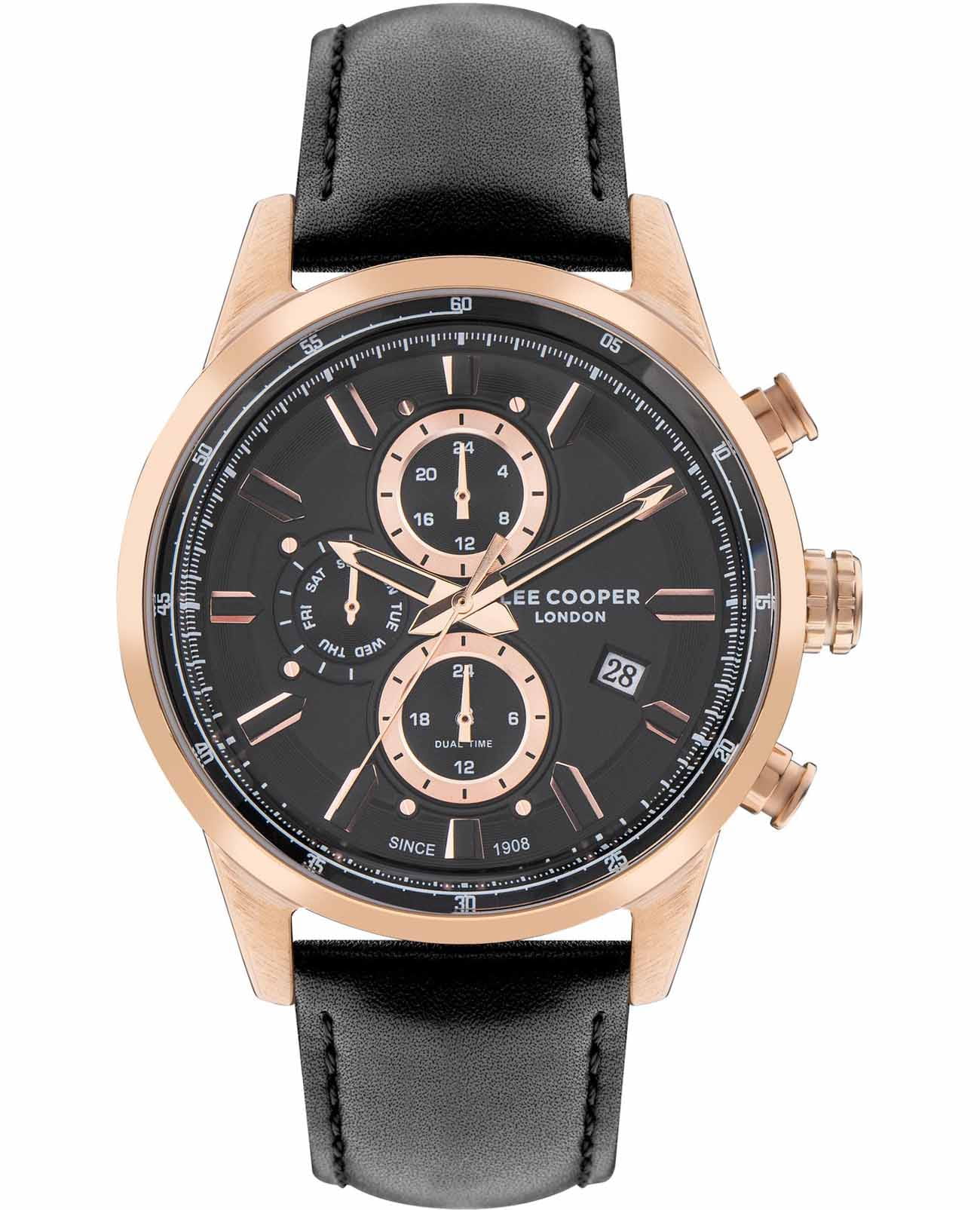 Мужские часы Lee Cooper LC07855.451 — это стильное сочетание элегантности и современного дизайна. Изысканный корпус диаметром 45 мм выполнен из суперметалла с IP-покрытиемIP-покрытиеМетод ионного напыления. Демонстрирует повышенную устойчивость к истиранию, окислению и химическим веществам. Под воздействием высокого давления и температуры около 1500°C молекулы металла надёжно соединяются с частицами корпуса часов., который придает модели особый изысканный вид. Циферблат защищен минеральным стекломМинеральное стеклоМинеральное стекло представляет собой искусственно выращенный минерал кварца. Такое стекло отличается особой устойчивостью к повреждениям и царапинам. Уступает по некоторым качествам сапфировому стеклу., обеспечивающим устойчивость к царапинам. Метки в виде штрихов. Часы оснащены надежным кварцевым механизмом, а кожаный ремень на стандартной застежке гарантирует комфортную посадку на запястье. Стрелки и метки с люминесцентным покрытиемЛюминесцентное покрытиеПозволяет считывать показания времени в темноте. Производители наносят на стрелки, часовые индексы, безель или поверхность циферблата светонакопительный состав, дающий холодное свечение. позволяют легко считывать время даже в условиях недостаточного освещения. Мультифункциональная модель с индикацией даты, дня недели, со вторым часовым поясомВторой часовой поясФункция, позволяющая отображать время двух часовых поясов одновременно.. Водозащита 50 метров позволит защитить корпус от случайных брызг или капель дождя. Lee Cooper — отличный выбор для тех, кто ценит утонченность и качество.