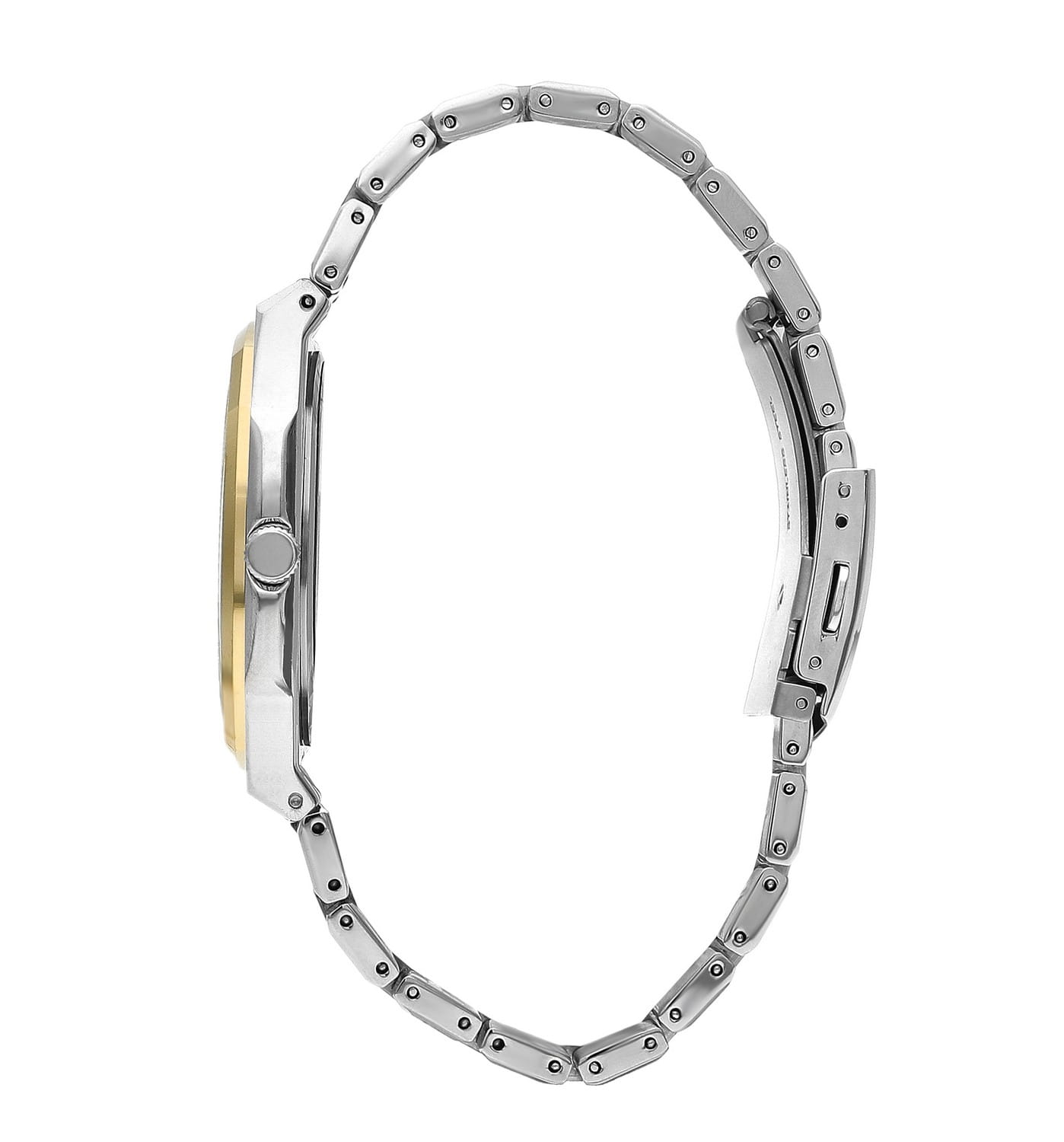 Мужские часы Lee Cooper LC07861.270 – это стильная модель, которая сочетает в себе современный дизайн и высокую функциональность. Часы идеально подходят для ежедневного ношения и могут стать отличным дополнением к любому наряду. Элегантный корпус часов диаметром 42 мм выполнен из суперметалла, а неподвижный безельБезельВнешний ободок, закрепляющий стекло. В спортивных часах так называется поворотное кольцо с делениями на циферблате, выполняет роль таймера – замеряет отрезки времени на шкале. Неподвижный безель – элемент декора. Однонаправленно вращающийся безель на дайверских часах позволяет фиксировать моменты погружения и выныривания на поверхность. с IP-покрытиемIP-покрытиеМетод ионного напыления. Демонстрирует повышенную устойчивость к истиранию, окислению и химическим веществам. Под воздействием высокого давления и температуры около 1500°C молекулы металла надёжно соединяются с частицами корпуса часов. придает модели особый блеск. Минеральное стеклоМинеральное стеклоМинеральное стекло представляет собой искусственно выращенный минерал кварца. Такое стекло отличается особой устойчивостью к повреждениям и царапинам. Уступает по некоторым качествам сапфировому стеклу. защищает изысканный циферблат от царапин, сохраняя его безупречный вид. Циферблат дополнен аккуратными стрелками с люминесцентным покрытиемЛюминесцентное покрытиеПозволяет считывать показания времени в темноте. Производители наносят на стрелки, часовые индексы, безель или поверхность циферблата светонакопительный состав, дающий холодное свечение., что гарантирует читаемость даже в условиях недостаточного освещения. Механизм часов гарантирует точный ход и надежную работу, а надежный браслет из нержавеющей стали с раскладной застёжкойРаскладная застёжкаТакой тип застёжки используется только на браслетах из металла. Она никогда не раскрывается полностью, происходит разделение на 2 и более частей. Раскладывающая застёжка снизит вероятность потери часов к минимуму. обеспечивает комфортную фиксацию на запястье. Водонепроницаемость 50 м позволяет использовать часы в повседневных условиях. Модель LC07861.270 станет прекрасным выбором для тех, кто ценит стиль и качество в аксессуарах.