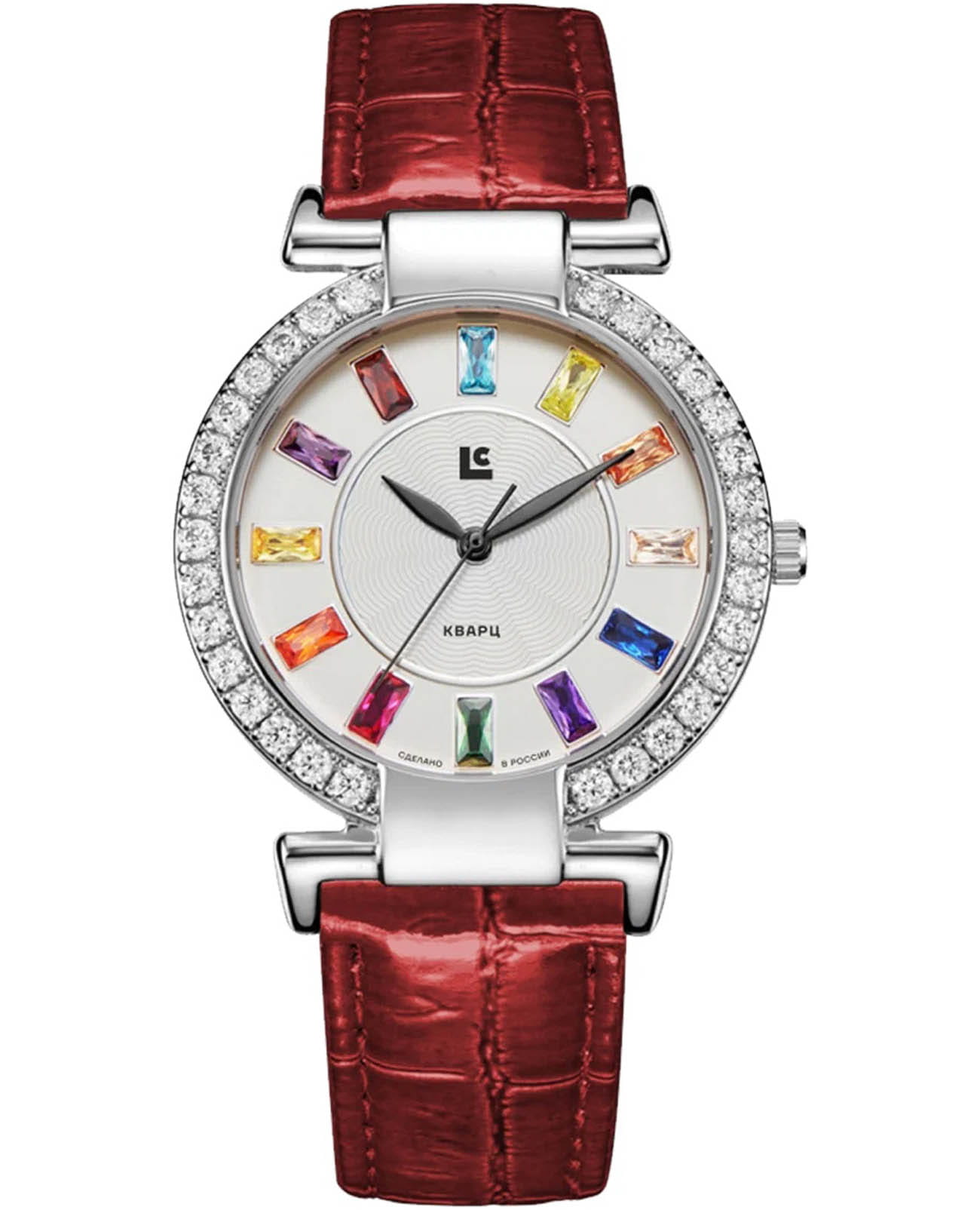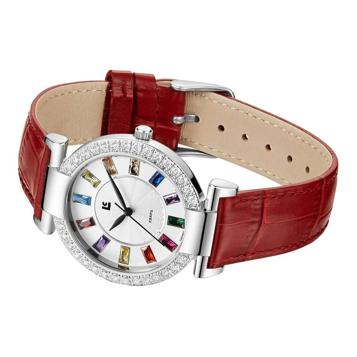 Женские кварцевые часы Lincor 4604L-3 с круглым корпусом из нержавеющей стали серебристого цвета диаметром 36 мм. Циферблат оборудован метками и стрелками для лучшей индикации времени. Для защиты от царапин использовано минеральное стеклоМинеральное стеклоМинеральное стекло представляет собой искусственно выращенный минерал кварца. Такое стекло отличается особой устойчивостью к повреждениям и царапинам. Уступает по некоторым качествам сапфировому стеклу.. БезельБезельВнешний ободок, закрепляющий стекло. В спортивных часах так называется поворотное кольцо с делениями на циферблате, выполняет роль таймера – замеряет отрезки времени на шкале. Неподвижный безель – элемент декора. Однонаправленно вращающийся безель на дайверских часах позволяет фиксировать моменты погружения и выныривания на поверхность. декорирован кристаллами. Часы оснащены кожаным ремешком со стандартной застёжкой. Водозащита 30 м предназначена для защиты от брызг и дождя, купание не допускается.