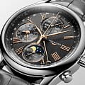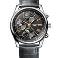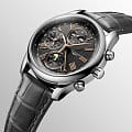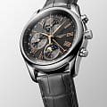 Мужсике швейцарские механические часы-хронографХронографФункция позволяет измерять отрезки времени с особой точностью: часы, минуты, секунды. Верным признаком хронографа является наличие на циферблате 3 дополнительных окошек-счётчиков. с автоподзаводом Longines Master Collection L2.673.4.61.2. Сапфировое стеклоСапфировое стеклоПрочный и надёжный материал из кристалла сапфира синтетического происхождения, характеризующийся особой твёрдостью и устойчивостью к царапинам и повреждениям. устойчивое к появлению царапин, обладающее высокой прозрачностью. Корпус часов изготовлен из нержавеющей стали. Функции: часы, минуты, малая секундная стрелка с 24-часовым индикатором в положении 9 часов. Дату показывает центральная стрелка с серповидным наконечником. Указатель фаз Луны в положении 6 часов. Прозрачная задняя крышка. Класс водозащиты: 30 метров, позволит защитить корпус от случайных брызг или капель дождя. Ремешок из кожи аллигатора на застёжке «бабочка» с кнопкамиЗастёжка "бабочка"Такой вид застёжки дополняется предохранителями, помогающими избежать случайного раскрытия браслета. Обладают изящным исполнением. .