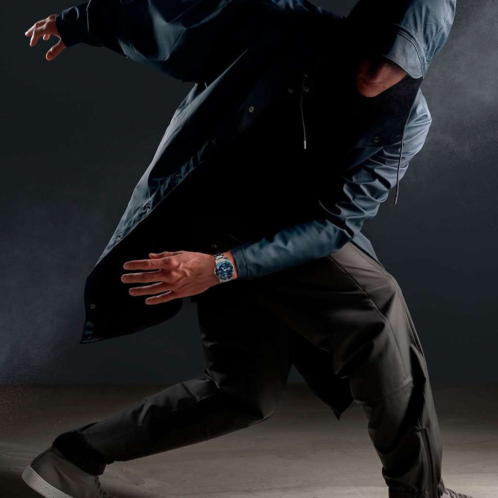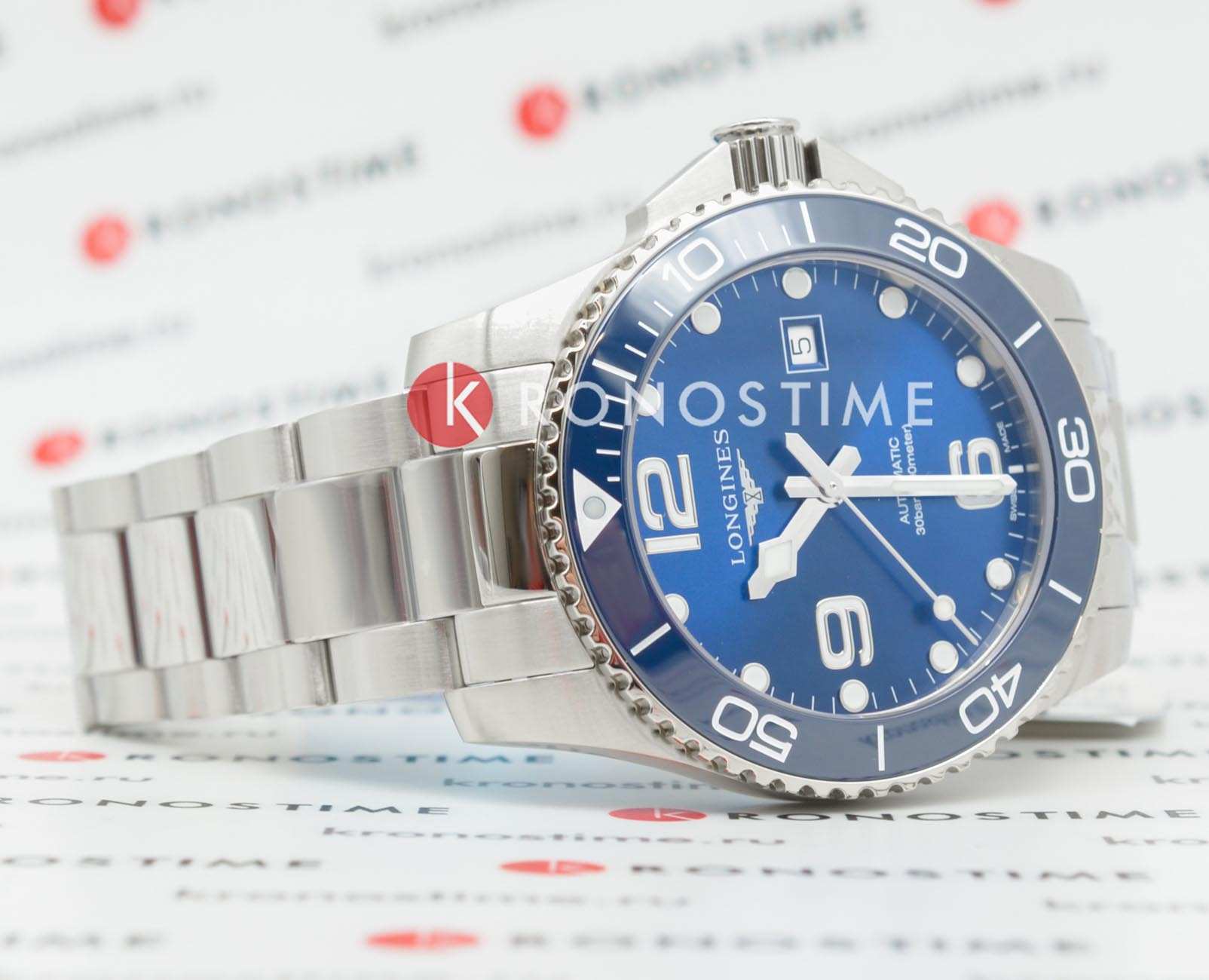 Синий циферблат с крупной индикаций времени дополнен контрастными стрелками и метками с люминесцентной подсветкойЛюминесцентное покрытиеПозволяет считывать показания времени в темноте. Производители наносят на стрелки, часовые индексы, безель или поверхность циферблата светонакопительный состав, дающий холодное свечение.. Керамический безельБезельВнешний ободок, закрепляющий стекло. В спортивных часах так называется поворотное кольцо с делениями на циферблате, выполняет роль таймера – замеряет отрезки времени на шкале. Неподвижный безель – элемент декора. Однонаправленно вращающийся безель на дайверских часах позволяет фиксировать моменты погружения и выныривания на поверхность. вращается в одном направлении, завинчивающаяся заводная головка и задняя крышка усиливают водостойкость до 30 бар. Швейцарский автоматический механизм L888 имеет резерв хода на 64 часа.