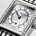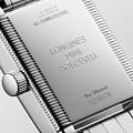 Женские швейцарские часы Longines DolceVita L5.200.0.75.6, кварцевый механизм с высокой точностью. Сапфировое стеклоСапфировое стеклоПрочный и надёжный материал из кристалла сапфира синтетического происхождения, характеризующийся особой твёрдостью и устойчивостью к царапинам и повреждениям. устойчивое к появлению царапин, обладающее высокой прозрачностью. Корпус инкрустирован 38 бриллиантами IF-VVS Top Wesselton. Круглый циферблат Cosmo внутри прямоугольного корпуса привлекает внимание своей бескомпромиссной элегантностью. Малая секундная стрелка в положении 6 часов. Класс водозащиты: 30 метров, позволит защитить корпус от случайных брызг или капель дождя. Браслет из нержавеющей стали на застёжке «бабочка» с кнопкамиЗастёжка "бабочка"Такой вид застёжки дополняется предохранителями, помогающими избежать случайного раскрытия браслета. Обладают изящным исполнением. .