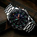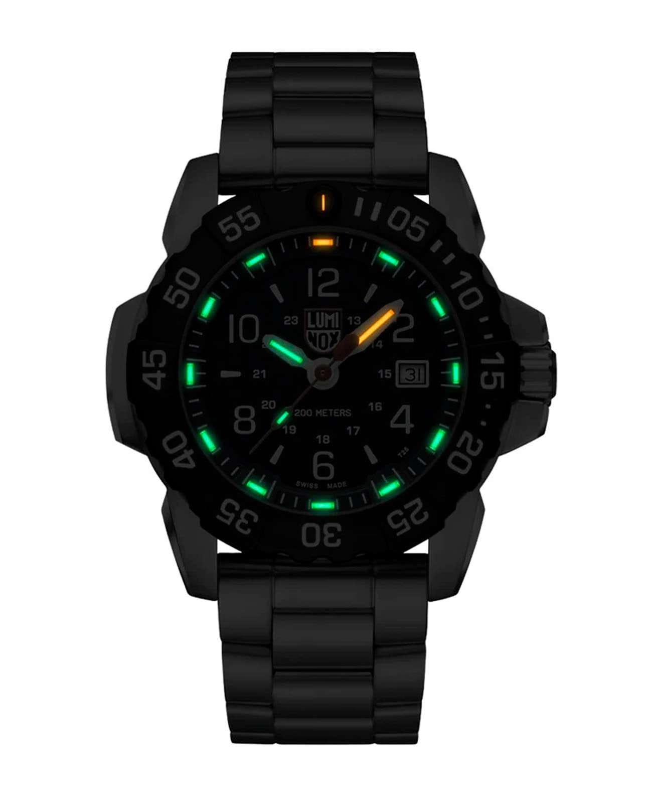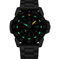 Мужские наручные часы Luminox XS.3254.CB из коллекции Navy SEAL сочетают в себе спортивный дизайн и надежность швейцарского качества . Модель обладает круглым корпусом диаметром 45 мм, изготовленным из стали икарбонаКарбонОт «carbon», «carbone» - углерод, углепластик - полимерный композиционный материал из переплетённых под определенным углом между собой нитей углеродного волокна, применяется для изготовления лёгких, но прочных деталей. В часах часто используют для украшения циферблатов и ремешков. Так же карбон используется в изготовлении корпусов. Такие корпуса обладают антикоррозионным свойством, не поддаются электромагнитному излучению, обладают повышенной прочностью и противоударностью. (CARBONOX™), что обеспечивает высокую устойчивость к внешним воздействиям при сохранении легкости . Циферблат черного цвета украшен контрастными метками и стрелками с люминесцентным покрытиемЛюминесцентное покрытиеПозволяет считывать показания времени в темноте. Производители наносят на стрелки, часовые индексы, безель или поверхность циферблата светонакопительный состав, дающий холодное свечение., гарантирующим постоянную видимость времени даже в условиях низкой освещенности благодаря системе LLTLLTLLT — это автономный механизм подсветки, основанный на использовании микроскопических газонаполненных элементов. Специальные герметичные капсулы из боросиликатного стекла, интегрированные в циферблат, генерируют свечение без необходимости подключения к внешним источникам энергии. Для их работы не требуется ни дополнительный свет, ни механическое воздействие (например, нажатие кнопки). Свечение возникает благодаря химическому процессу: реакция между тритием, заключенным в капсулах, и люминофорным покрытием создает стабильное автономное освещение. Технология обеспечивает энергетическую независимость и долговечность подсветки. (микрогазовые огни) . Часы оснащены кварцевым механизмом швейцарского производства Ronda 515, обеспечивающим точность хода ±15 секунд в месяц . Защиту циферблата обеспечивает прочное сапфировое стеклоСапфировое стеклоПрочный и надёжный материал из кристалла сапфира синтетического происхождения, характеризующийся особой твёрдостью и устойчивостью к царапинам и повреждениям. с антибликовым покрытиемАнтибликовое покрытиеСлой оксида металла в 0,13-0,3 микрон, благодаря которому стекло часов не бликует и не отражает свет. Антибликовое покрытие уменьшает отражение света в 10 раз, обеспечивая отличную читаемость показателей циферблата., устойчивое к царапинам и механическим повреждениям . Водонепроницаемость модели достигает 20 атмосфер (200 метров), что делает их подходящими для плавания и активного отдыха на воде, включая дайвинг. Модель также оснащена безелемБезельВнешний ободок, закрепляющий стекло. В спортивных часах так называется поворотное кольцо с делениями на циферблате, выполняет роль таймера – замеряет отрезки времени на шкале. Неподвижный безель – элемент декора. Однонаправленно вращающийся безель на дайверских часах позволяет фиксировать моменты погружения и выныривания на поверхность. с односторонним вращением, что добавляет функциональности при использовании в водных условиях .Стальной браслет на раскладной застёжкеРаскладная застёжкаТакой тип застёжки используется только на браслетах из мета