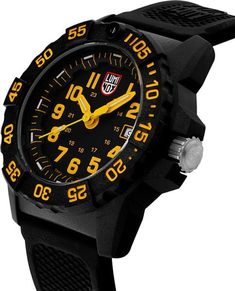 Часы Luminox XS.3505.L — это надежные и стильные швейцарские часы с кварцевым механизмом. Корпус выполнен из пластика, усиленного прессованным карбономКарбонОт «carbon», «carbone» - углерод, углепластик - полимерный композиционный материал из переплетённых под определенным углом между собой нитей углеродного волокна, применяется для изготовления лёгких, но прочных деталей. В часах часто используют для украшения циферблатов и ремешков. Так же карбон используется в изготовлении корпусов. Такие корпуса обладают антикоррозионным свойством, не поддаются электромагнитному излучению, обладают повышенной прочностью и противоударностью., что обеспечивает прочность и долговечность. Черный циферблат защищен минеральным стекломМинеральное стеклоМинеральное стекло представляет собой искусственно выращенный минерал кварца. Такое стекло отличается особой устойчивостью к повреждениям и царапинам. Уступает по некоторым качествам сапфировому стеклу. повышенной прочности, что делает его устойчивым к царапинам и ударам. Каучуковый браслет с классической застежкой обеспечивает комфортное ношение и надежность фиксации на запястье. Эти часы обладают впечатляющим уровнем водозащиты до 200 метров, что делает их подходящими для водных видов спорта и активного отдыха. Светящаяся метка на безелеБезельВнешний ободок, закрепляющий стекло. В спортивных часах так называется поворотное кольцо с делениями на циферблате, выполняет роль таймера – замеряет отрезки времени на шкале. Неподвижный безель – элемент декора. Однонаправленно вращающийся безель на дайверских часах позволяет фиксировать моменты погружения и выныривания на поверхность., который вращается в одном направлении, добавляет функциональности и удобства, особенно в условиях низкой освещенности. Технология LLTLLTLLT — это автономный механизм подсветки, основанный на использовании микроскопических газонаполненных элементов. Специальные герметичные капсулы из боросиликатного стекла, интегрированные в циферблат, генерируют свечение без необходимости подключения к внешним источникам энергии. Для их работы не требуется ни дополнительный свет, ни механическое воздействие (например, нажатие кнопки). Свечение возникает благодаря химическому процессу: реакция между тритием, заключенным в капсулах, и люминофорным покрытием создает стабильное автономное освещение. Технология обеспечивает энергетическую независимость и долговечность подсветки.-подсветки обеспечивает отличную видимость в темноте на протяжении 25 лет, позволяя контролировать время даже при полном отсутствии света. Часы поддерживают отображение времени в 12- и 24-часовом формате, а наличие календаря с указанием числа добавляет практичности. Заводная головка снабжена защитой и двойной уплотнительной прокладкой для обеспечения герметичности, а задняя крышка крепится на винтах для дополнительной надежности.