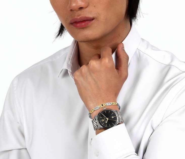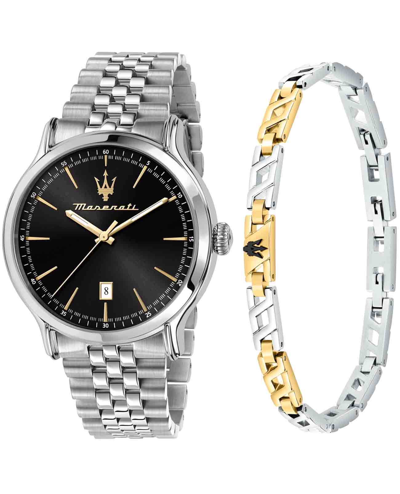 Мужские часы Maserati Epoca R8853118029 — это стильное сочетание элегантности и современного дизайна. Корпус из нержавеющей стали с диаметром 42 мм идеально сбалансирован и элегантен. Минеральное стеклоМинеральное стеклоМинеральное стекло представляет собой искусственно выращенный минерал кварца. Такое стекло отличается особой устойчивостью к повреждениям и царапинам. Уступает по некоторым качествам сапфировому стеклу. защищает циферблат от царапин. Стальной браслет на застёжке-бабочке с кнопкамиЗастёжка "бабочка"Такой вид застёжки дополняется предохранителями, помогающими избежать случайного раскрытия браслета. Обладают изящным исполнением. идеально дополняют дизайн часов, обеспечивая комфортное ношение. Стрелки и метки с люминесцентным покрытиемЛюминесцентное покрытиеПозволяет считывать показания времени в темноте. Производители наносят на стрелки, часовые индексы, безель или поверхность циферблата светонакопительный состав, дающий холодное свечение.. Часы обладают впечатляющей водонепроницаемостью до 10 бар (100 метров), что делает их идеальными для повседневной носки. Метки в виде штрихов. Модель идёт в комплекте с мужским браслетом из гипоаллергенной нержавеющей стали с частичным гальваническим покрытием золотом.